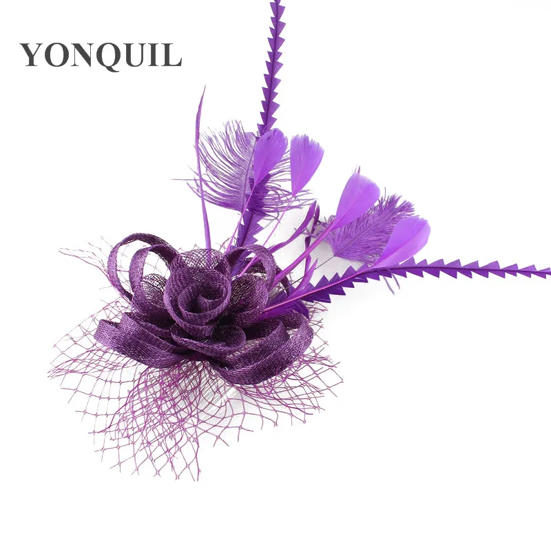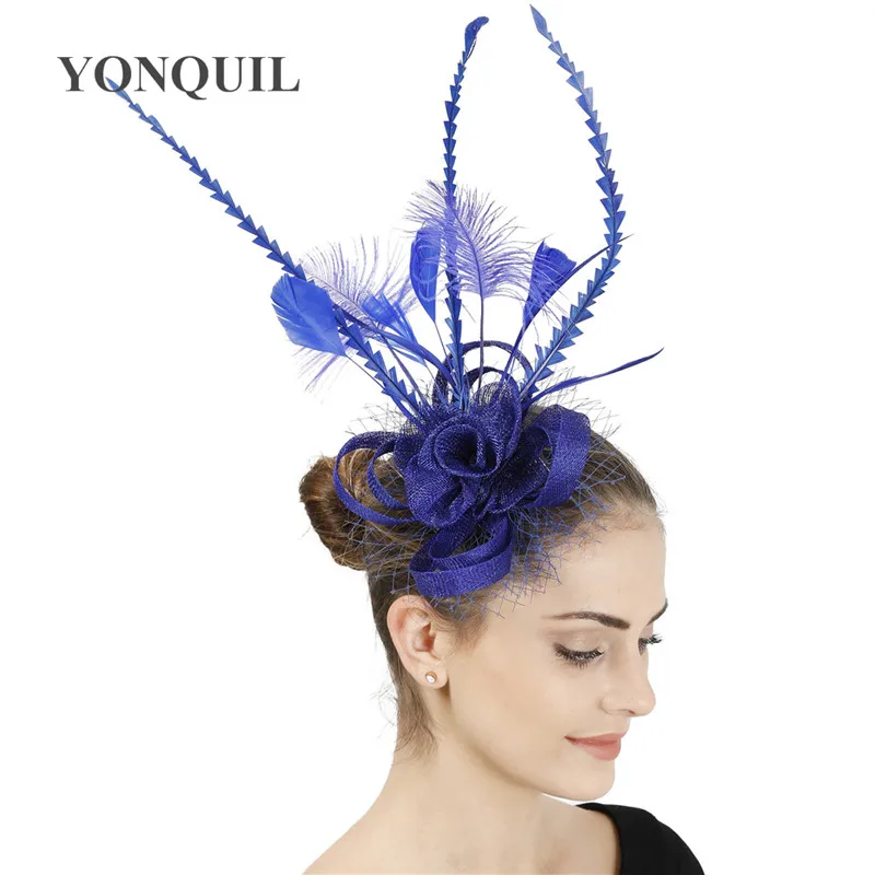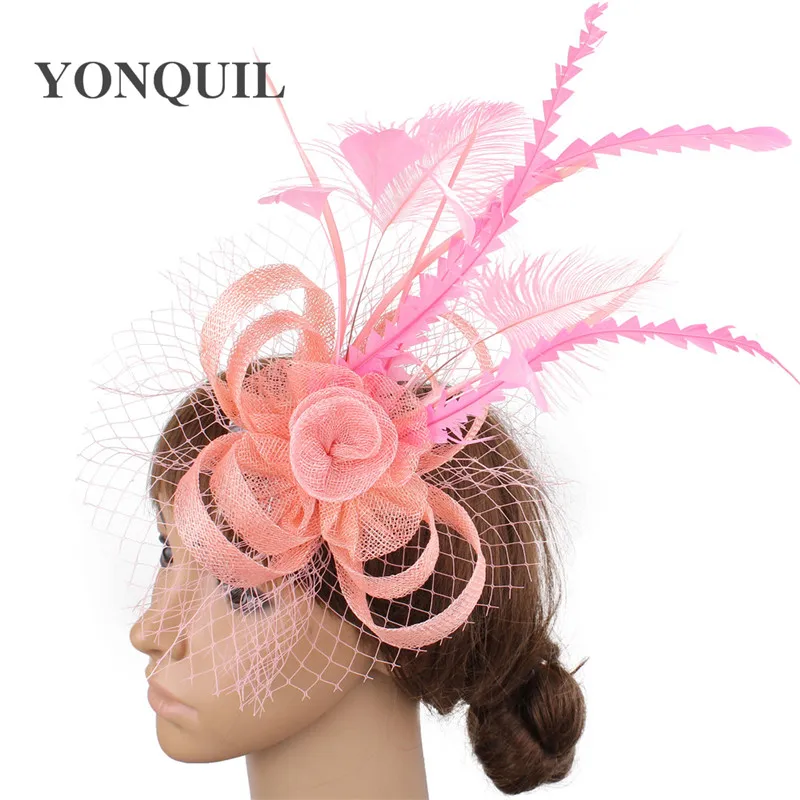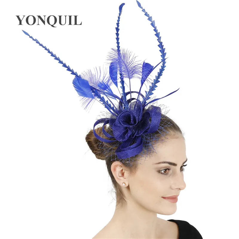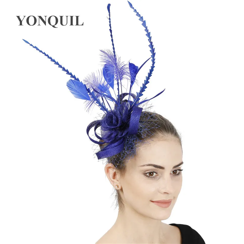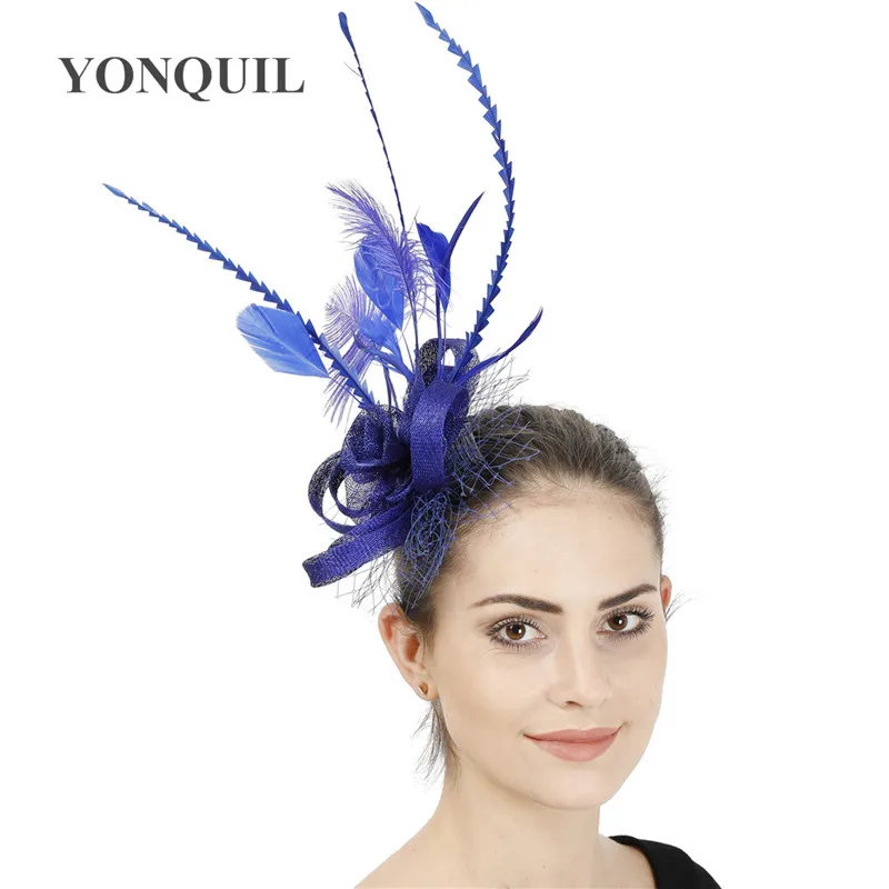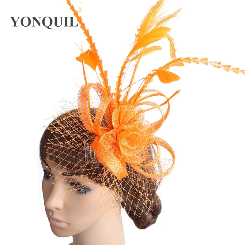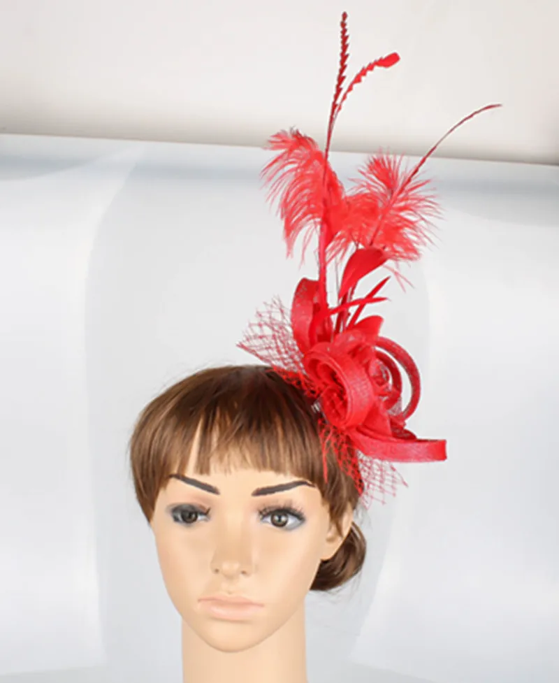 Винтажные золотые головные уборы Sinamay для свадьбы, аксессуары для невесты, красные шляпы с перьями для коктейлей MYQ010