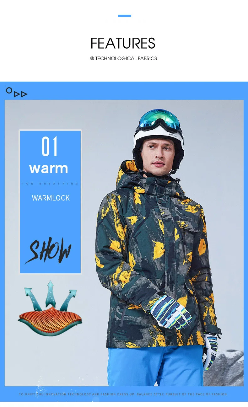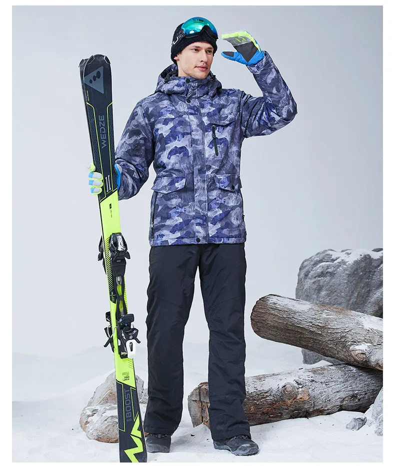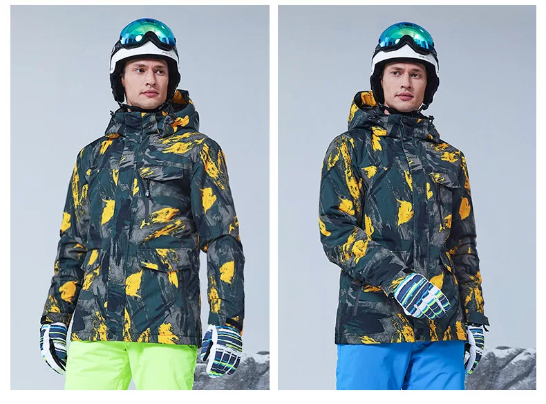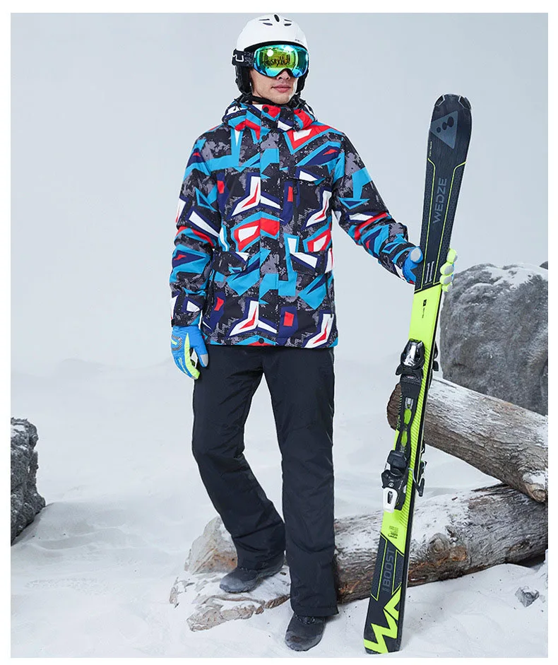 Мужской лыжный костюм, зимний теплый, водонепроницаемый, ветрозащитный костюм, куртка для катания на лыжах и сноуборде