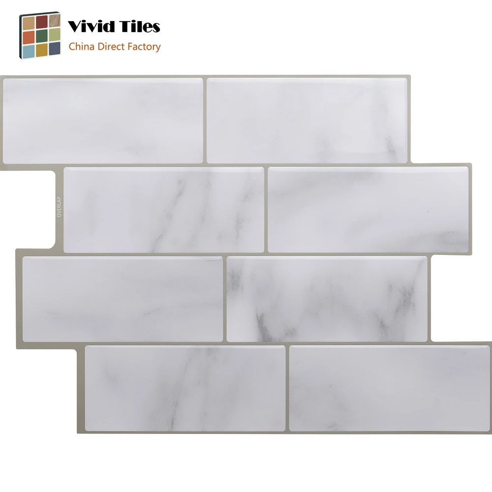 Яркая самоклеящаяся плитка, популярная, устойчивая к жаре и влажности, белая плитка из каррары 3D, 1 лист