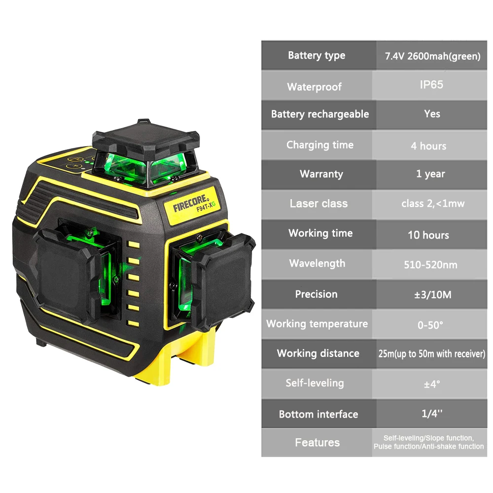 FIRECORE F94T-XG зеленый лазер Nivel 3D 12 линий Лазерный Уровень 3...