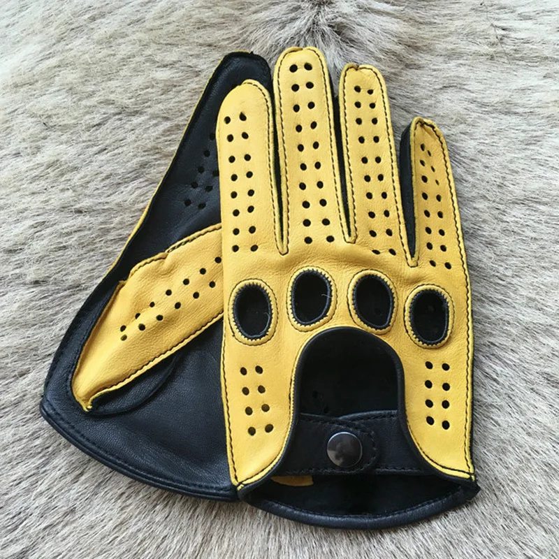 Мужские перчатки из натуральной овечьей кожи, дышащие водительские перчатки без подкладки, модные водительские перчатки