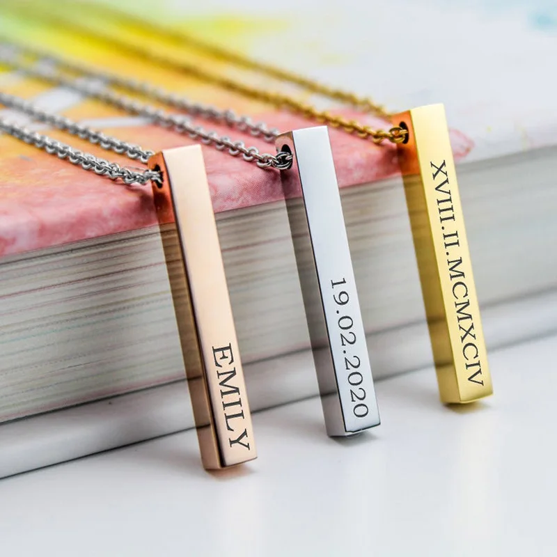 Изготовленное на заказ длинное вертикальное ожерелье для женщин и мужчин, выгравированное имя, оригинальная Подвеска из нержавеющей стали, вдохновляющие подарки