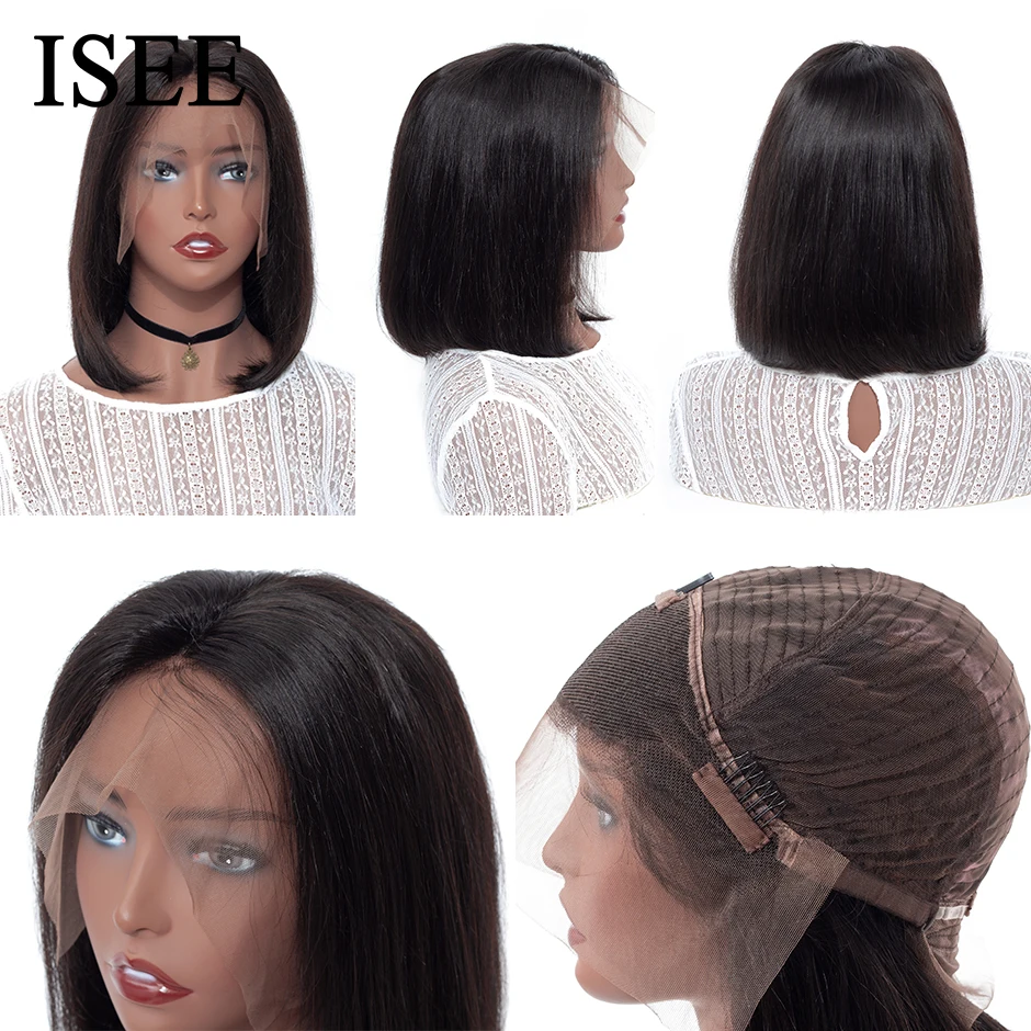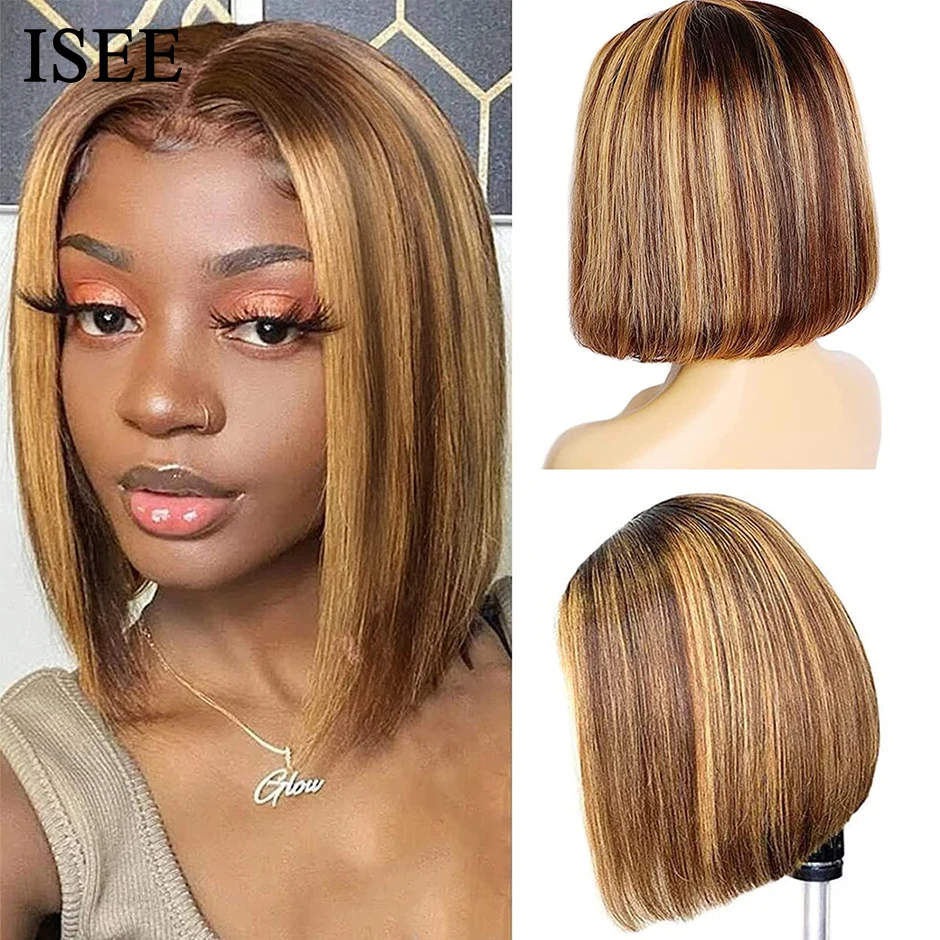 Прямые парики из натуральных волос Боб на сетке прямые короткие парики боб ISEE волосы Highligh боб парик из малазийских волос на сетке передний парик из натуральных волос