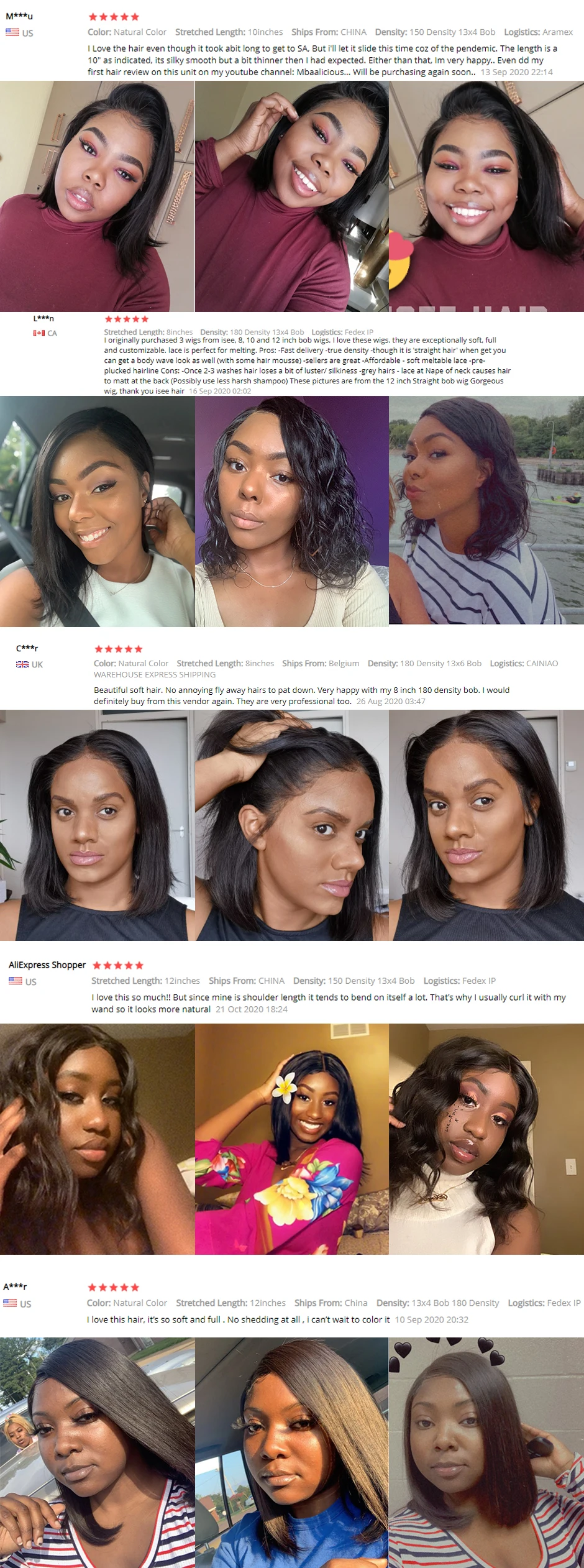 Я изначально купил 3 парики из isee, 8, 10 и 12 дюймовых парики bob. Мне нравятся эти парики. Они исключительно мягкие, полные и Настраиваемые. Кружево идеально подходит для плавления. Плюсы: -Быстрая доставка -Истинная плотность -Хотя это «прямые волосы», когда вы получите, вы также можете получить объемную волну (с некоторыми муссами для волос) -Продавцы отличные -Доступная цена -Мягкое мелкое кружево -Предварительно выщипанная линия волос Против: -Один раз 2-3 мытья волос теряет немного блеска/шелковистость -Серые волосы -Кружево на затылке вызывает Матирование волос на спине (возможно использование менее жесткого шампуня) Эти фотографии сделаны из 12-дюймового прямого парика Боба Великолепный парик, спасибо, Я просмотрю волосы