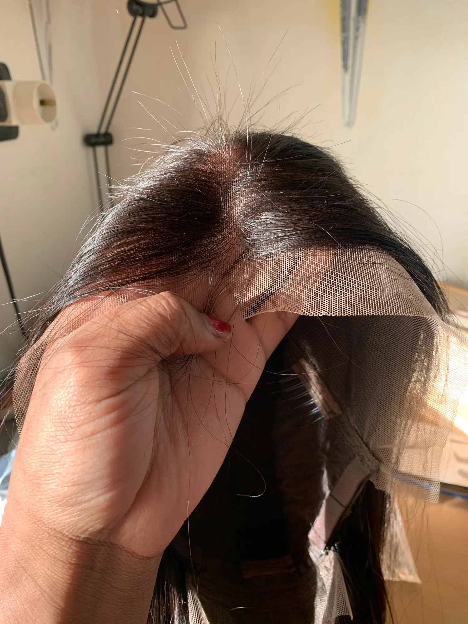 trop bien ! livraison rapide même depuis la Chine . Qualité au top mal grès quelques cheveux qui ont l’air synthétique et qui sont plus court (au niveau de la raie) mais avec de la cire je pense que ça tiendra bien. Je vais décolorer les nœuds même si ils sont déjà assez discrets je trouve. Les premiers cheveux ont l’air pré customisé mais je vais quand même customiser le devant. J’appréhendais un peu car c’est ma première perruque mais je suis grave satisfaite, je mettrai sûrement des photos de quand je la porterai.