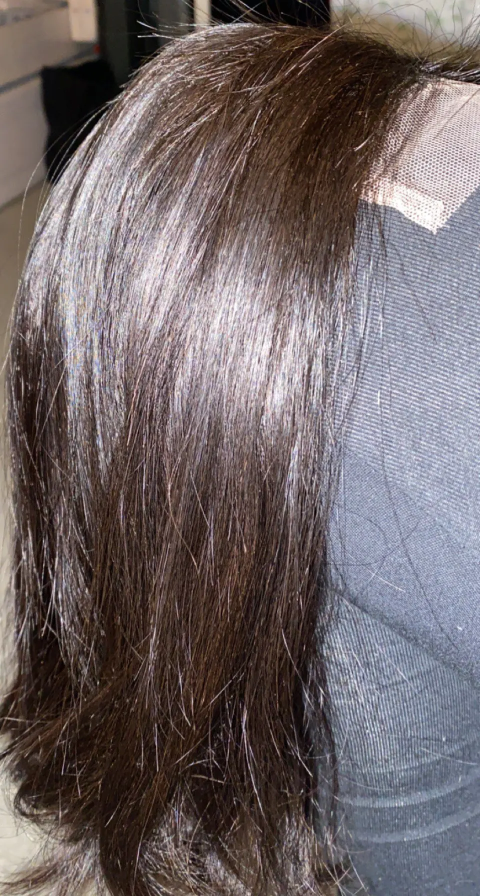 Я заказал 12 дюймов, и он отличный, мне нравится тот факт, что он полный и ударенный в конце, ощущается легкий и мягкий, а кружево хорошее! С париком все в порядке