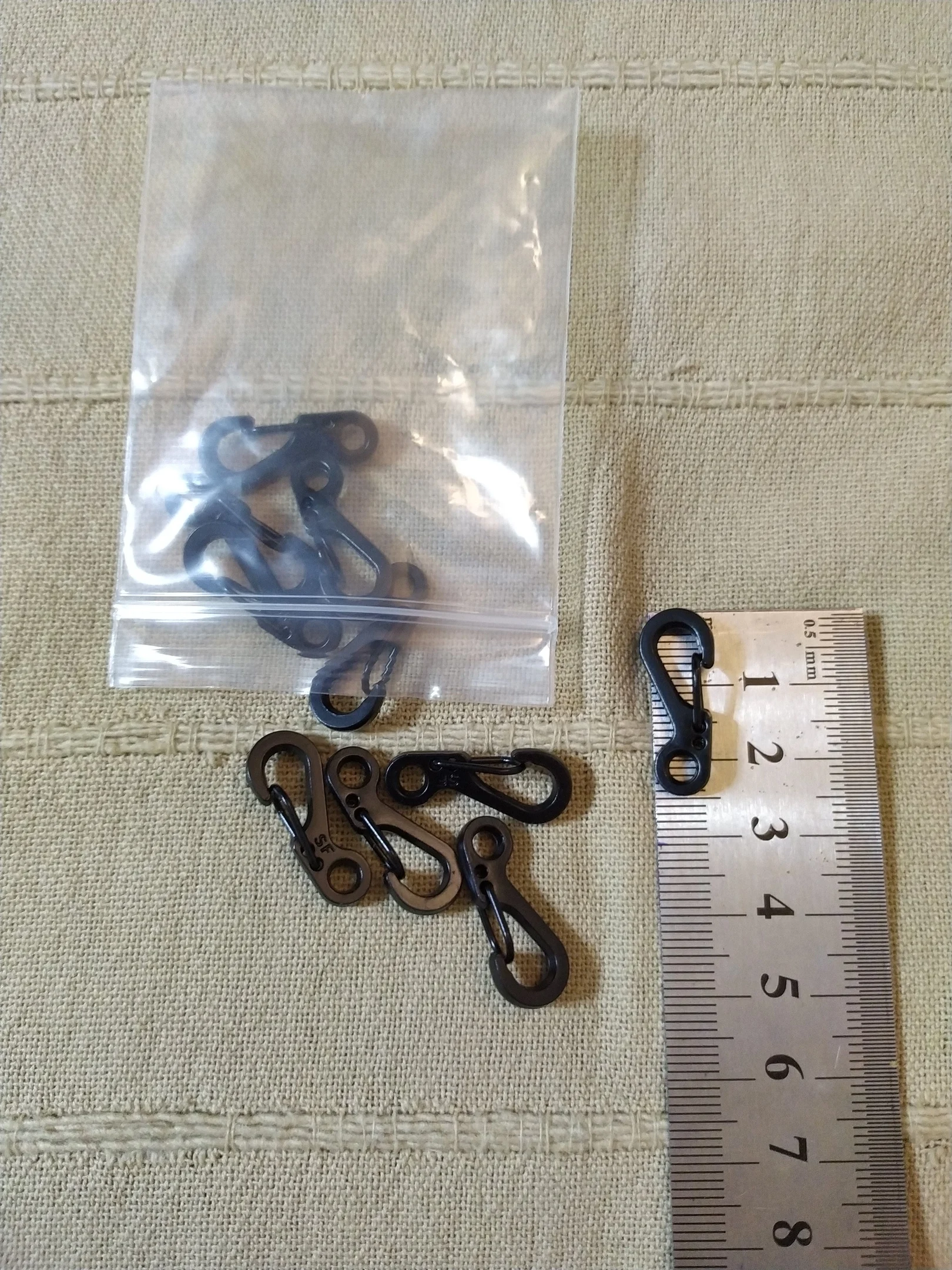 Быстрая отправка. Карабины реально крохотные, размером с ноготь. Петелька под веревочку мм до 4, сам карабин максимум до мм 5-6.