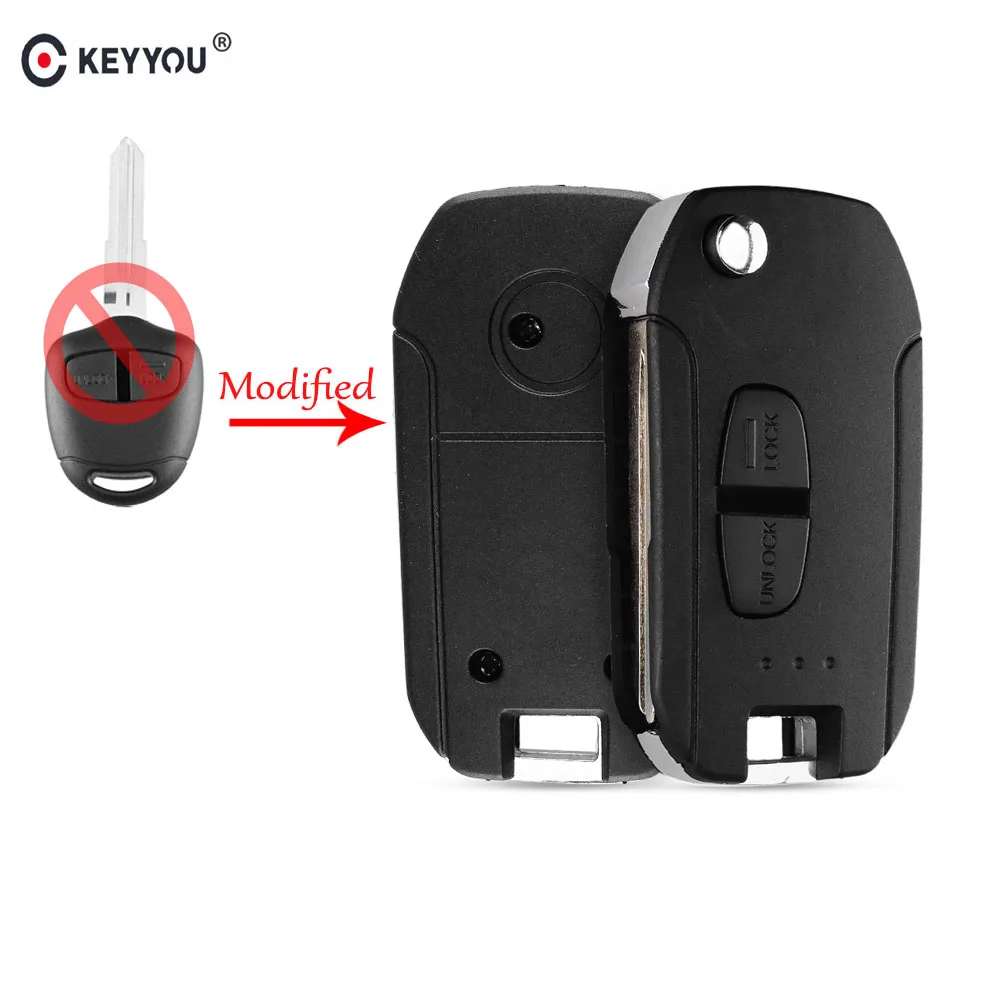 Модифицированный ключ KEYYOU для Mitsubishi Lancer EX Evolution Grandis Outlander, корпус ключа без надписей, чехол-брелок с левым лезвием, складной