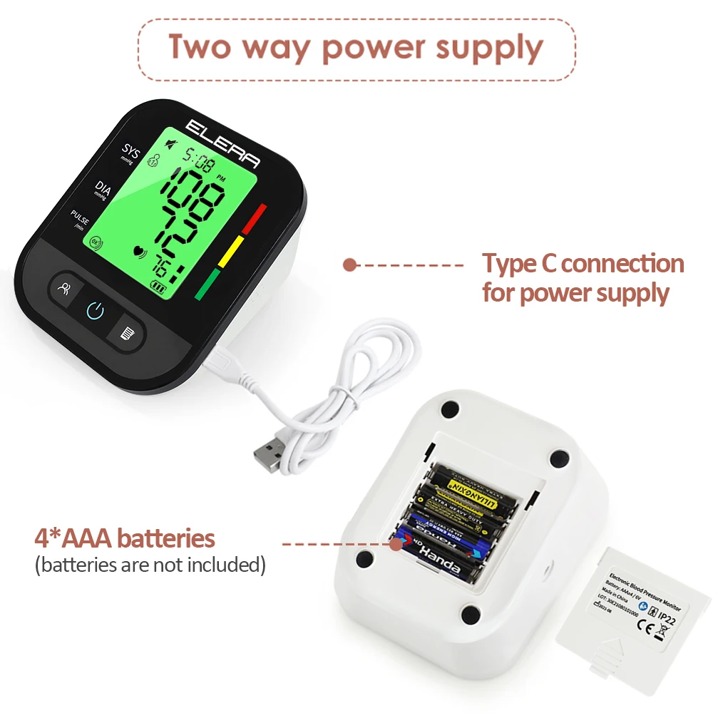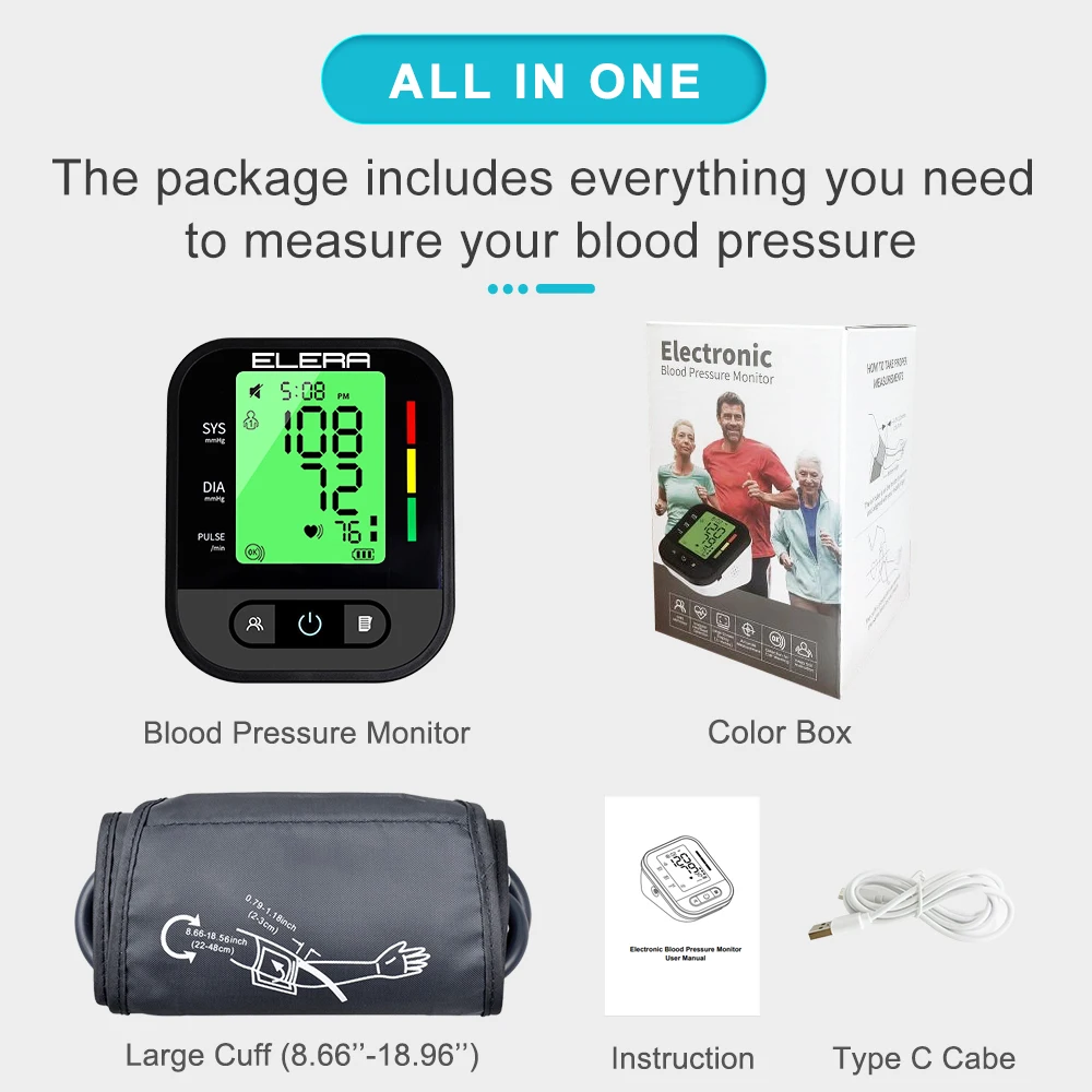 Монитор артериального давления ELERA русский, быстрая доставка, подсветка 22-48 см, большая рукоятка, большая манжета, автоматическое подключение ЖК типа C