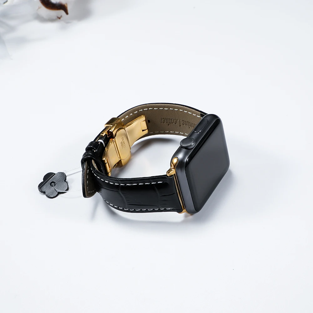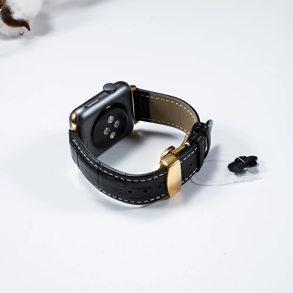 Ремешок для Apple watch 44 мм, 40 мм, с пряжкой-бабочкой, кожаный б...