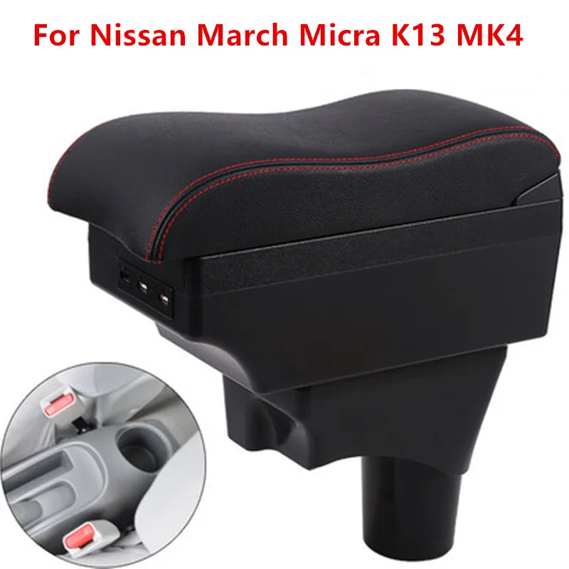 Подлокотник для Nissan March Micra K13 MK4 IV, центральный контейнер для хранения вещей с подстаканником и пепельницей, интерфейс USB 2010-2017