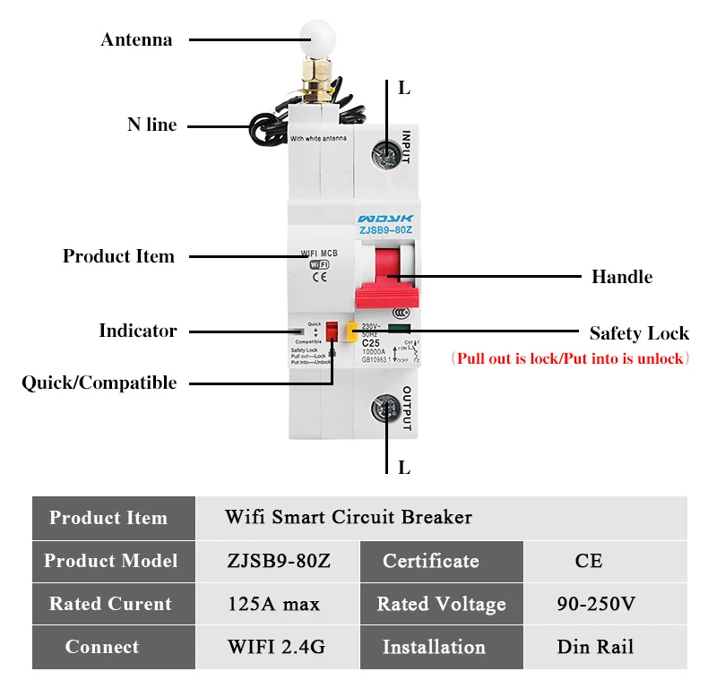 1P WiFi умный автоматический выключатель защита от перегрузки от ко...