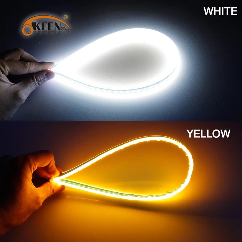 OKEEN 30 см 45 см 60 см 12 В светодиодный drl дневные ходовые огни белая фара светодиодный Янтарный поворотный свет drl полоса ангельские глазки для фар