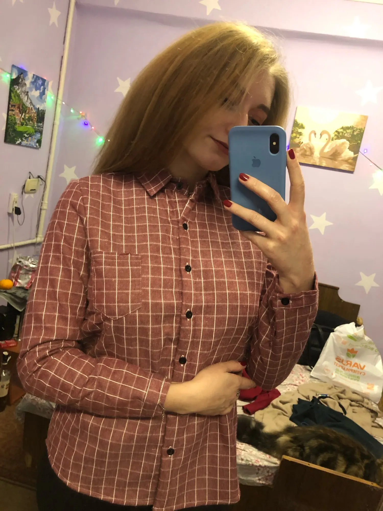 На российский 42-44 размер L оказался впритык, нет запаса по длине рукава. Цвет бордовый приглушенный, бледнее, чем на фото. Рубашка мягкая, приятная к телу.