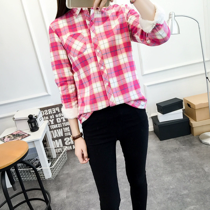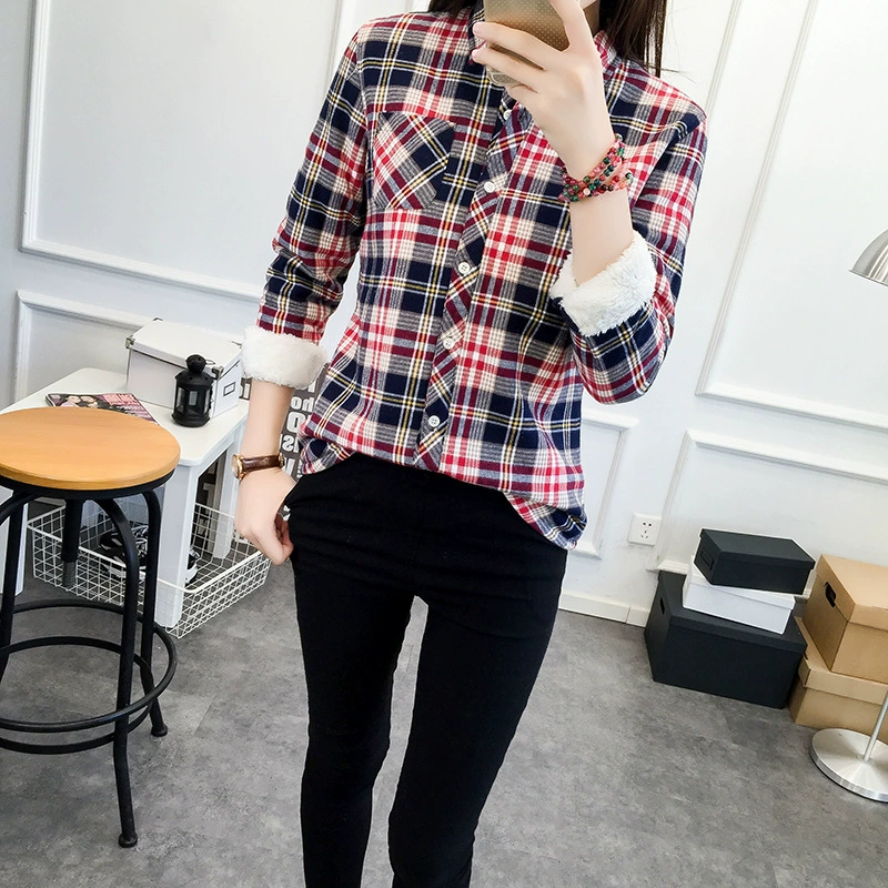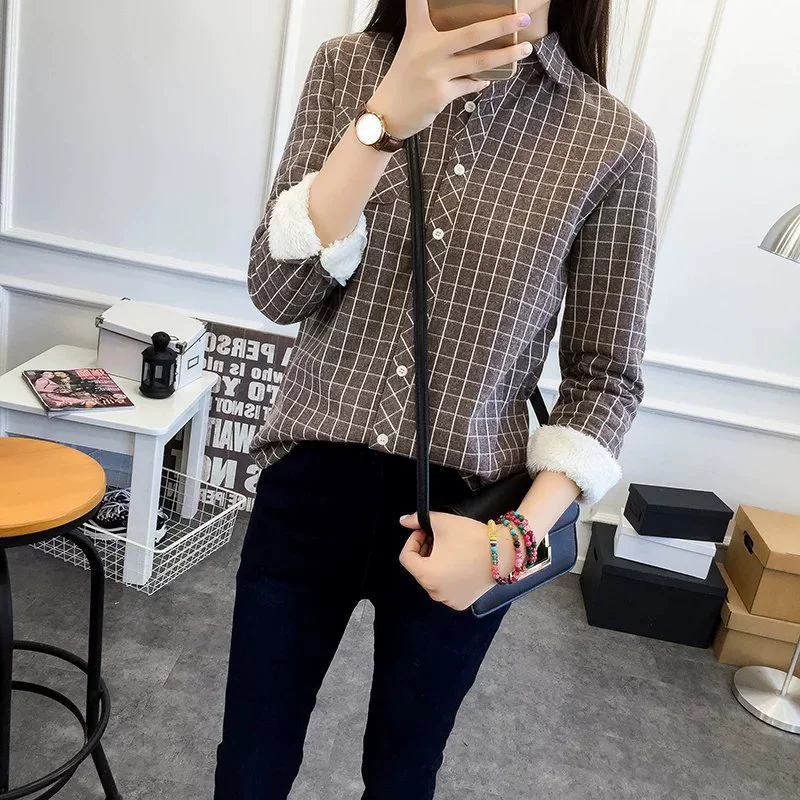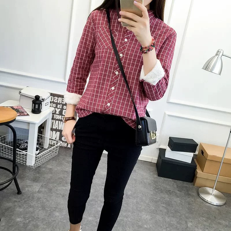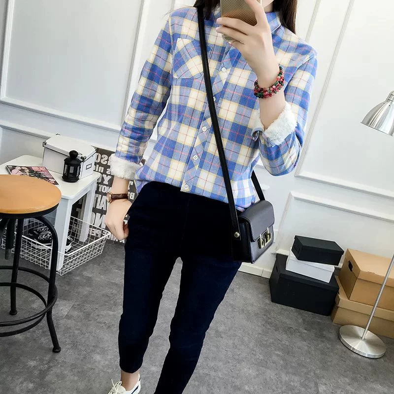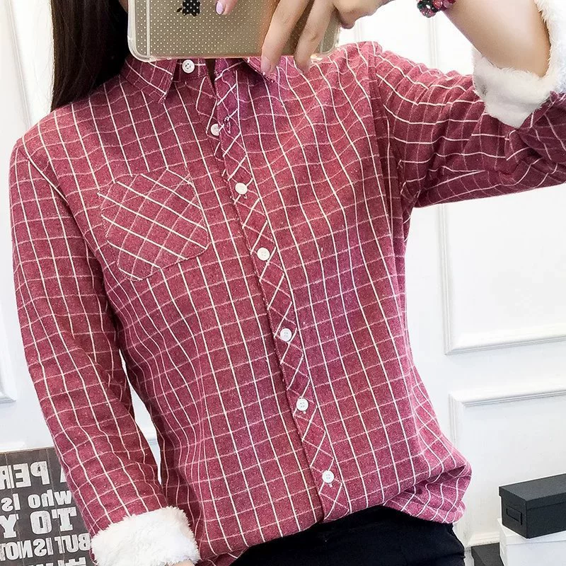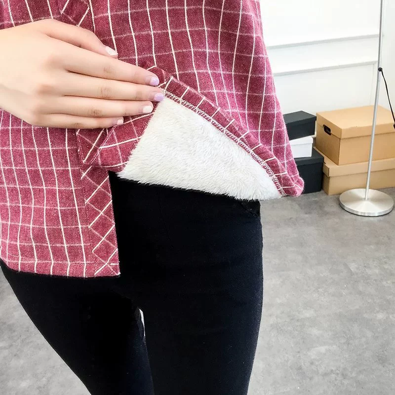 Рубашка женская хлопковая, зимняя, теплая, с длинным рукавом, на флисе, в клетку, 2021