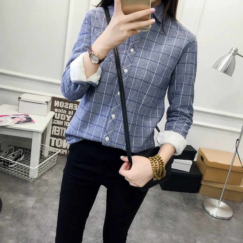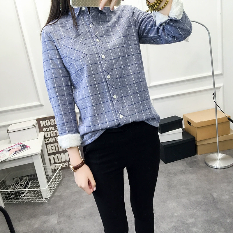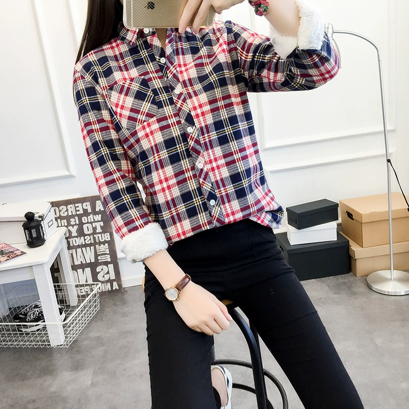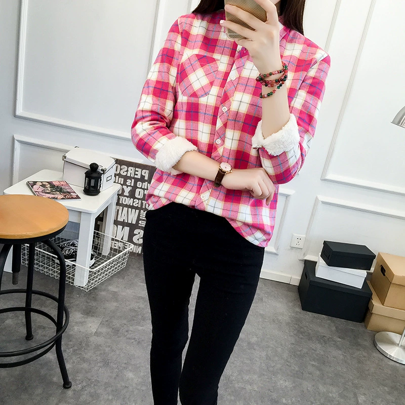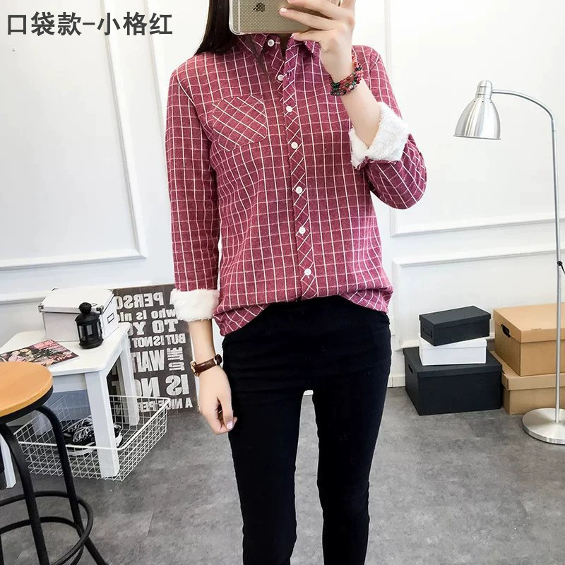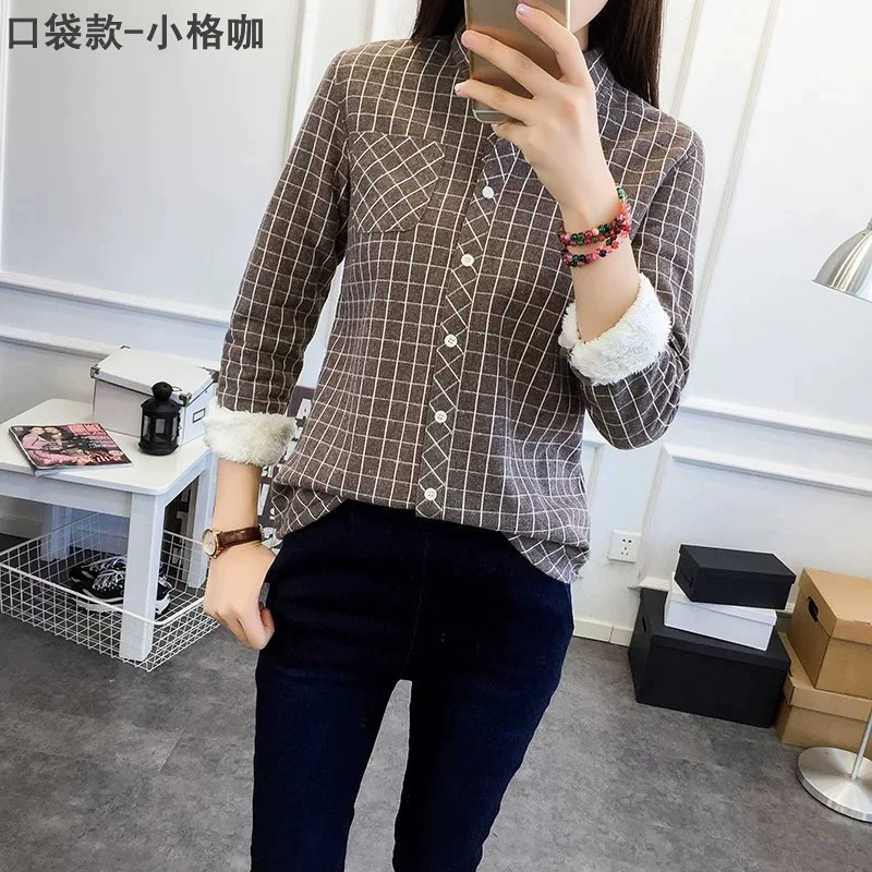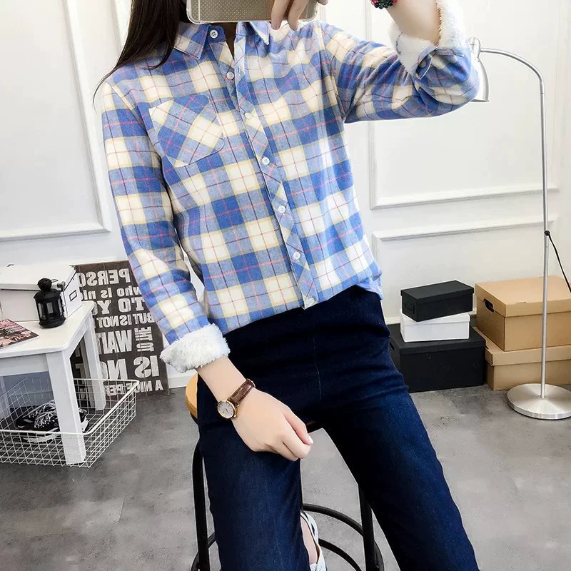 Рубашка женская хлопковая, зимняя, теплая, с длинным рукавом, на флисе, в клетку, 2021