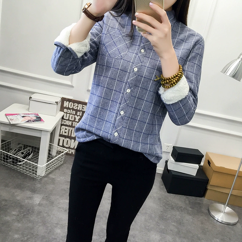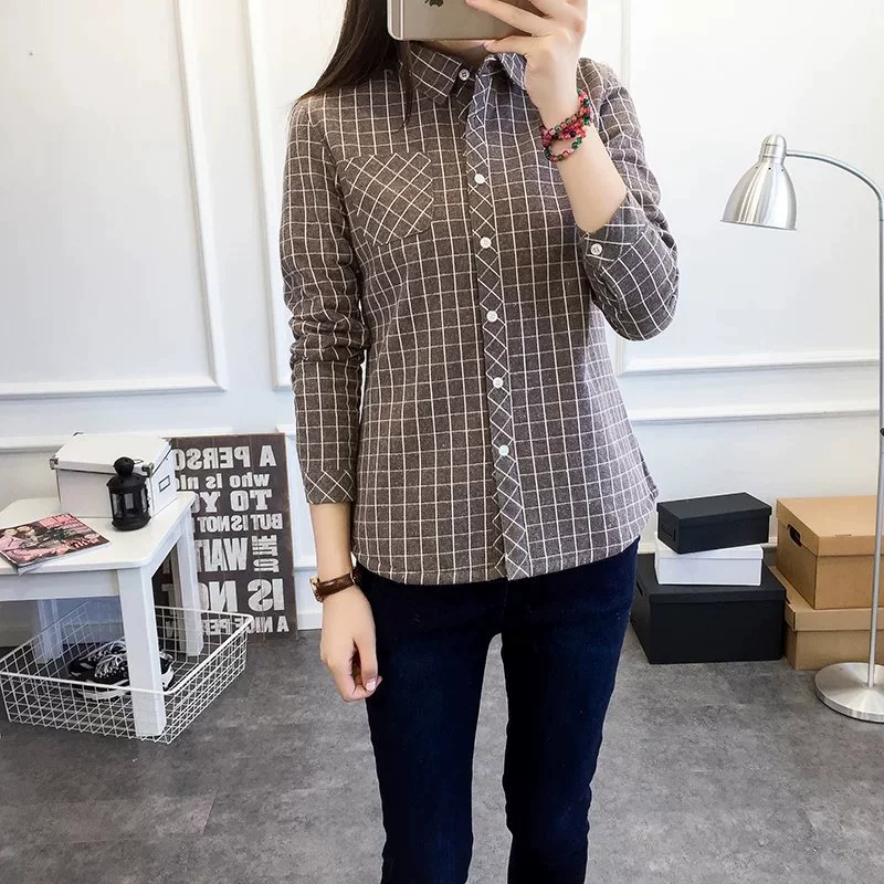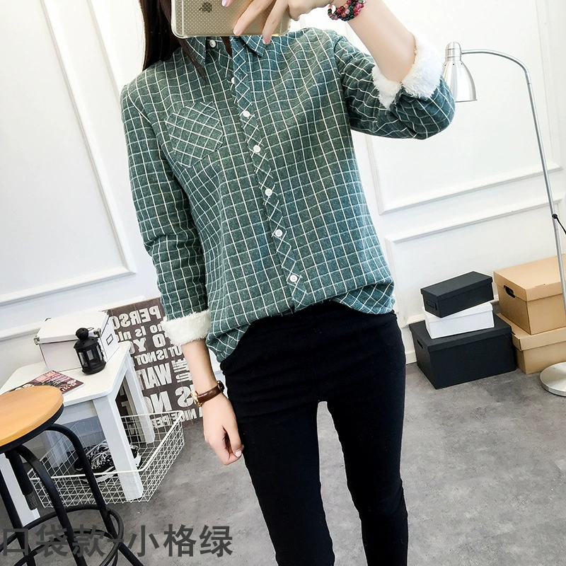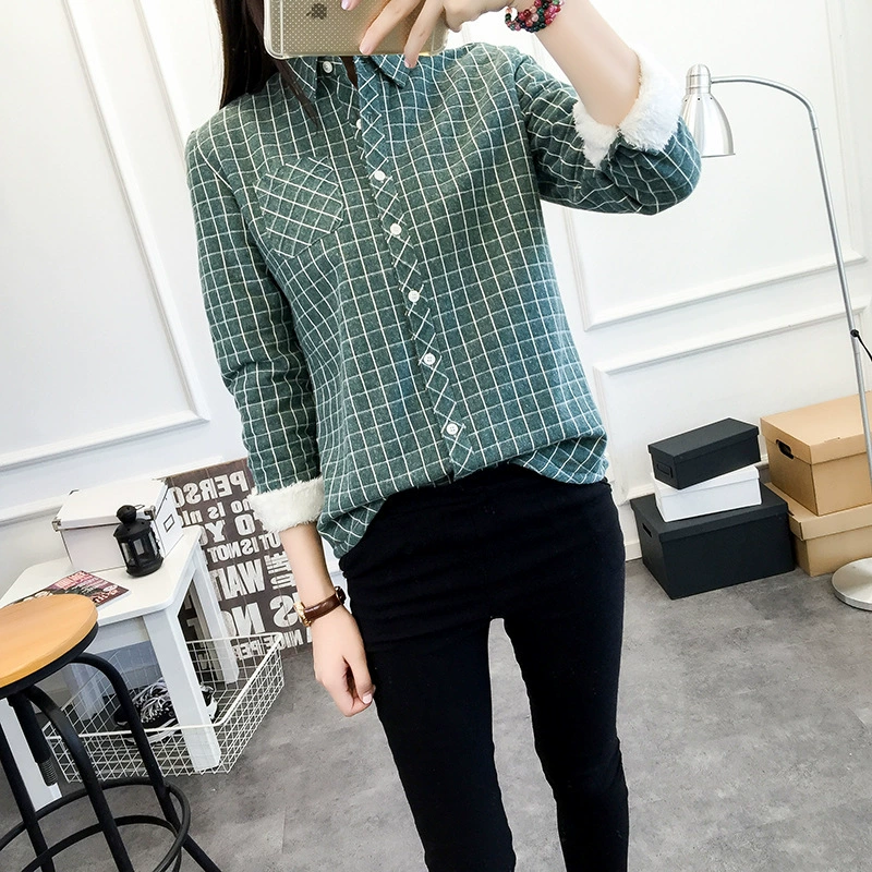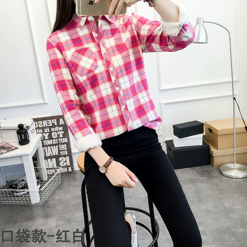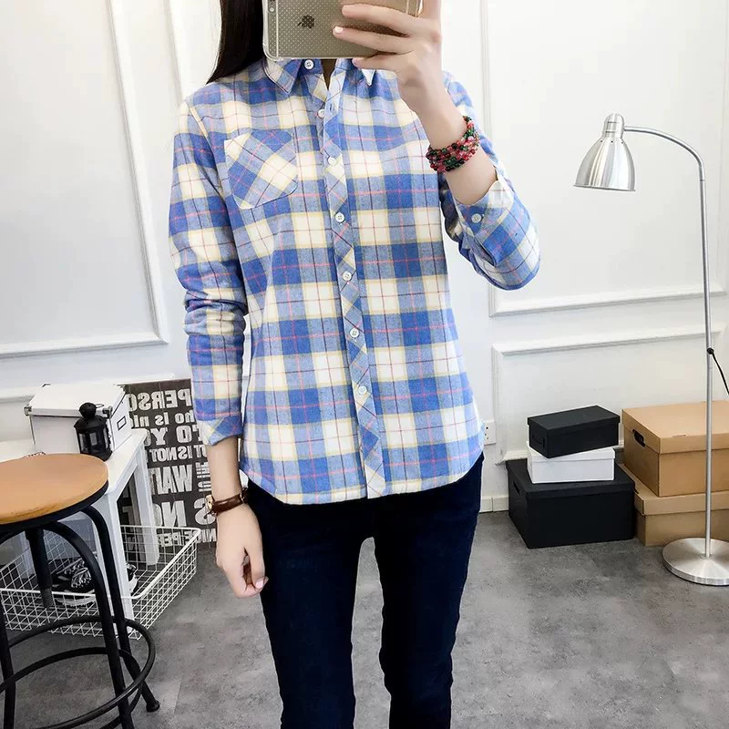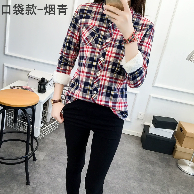 Рубашка женская хлопковая, зимняя, теплая, с длинным рукавом, на флисе, в клетку, 2021
