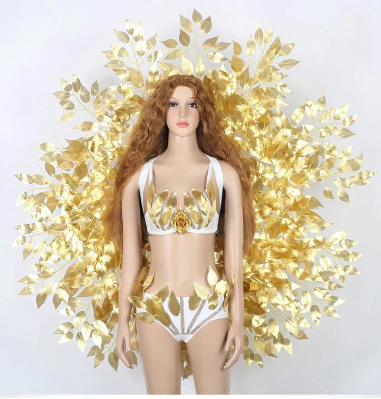 Ночной клуб, женские ведущие танцевальные костюмы, бар, DJ, певец, одежда для выступлений, модельный подиум, сексуальные золотые крылья, бикини, одежда для сцены
