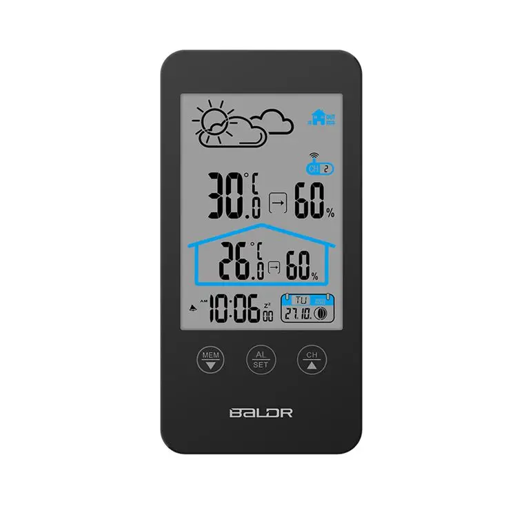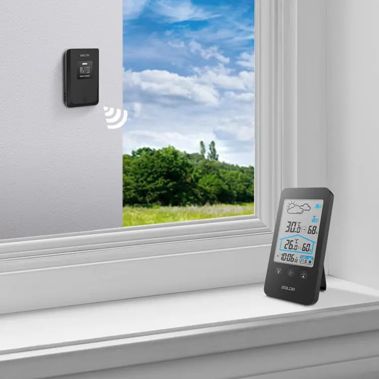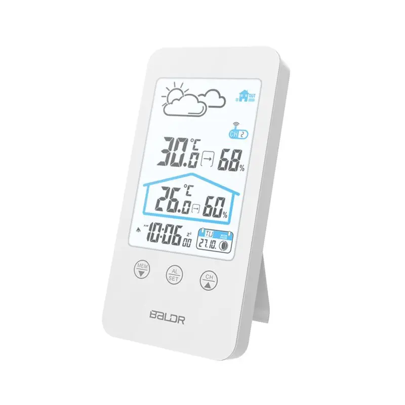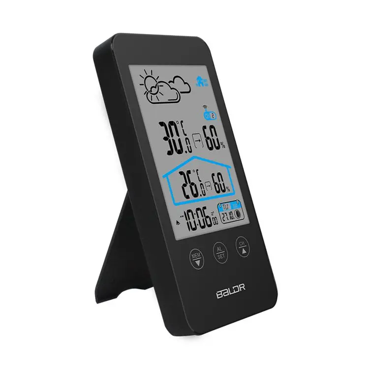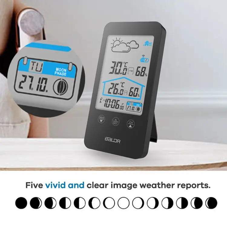 Метеостанция для использования в помещении и на улице, с сенсорным экраном, беспроводной термометр, гигрометр, прогноз погоды, календарь фаз Луны, будильник повтора