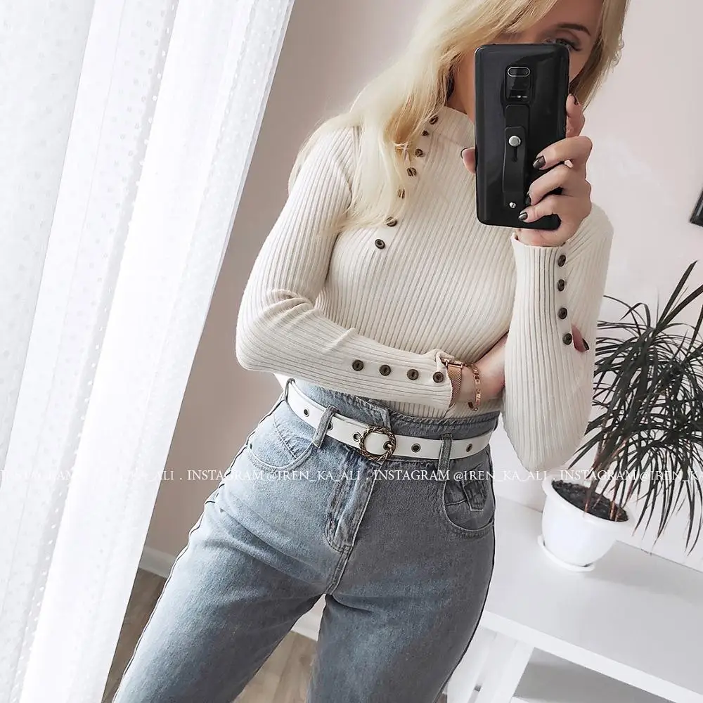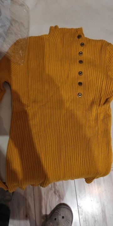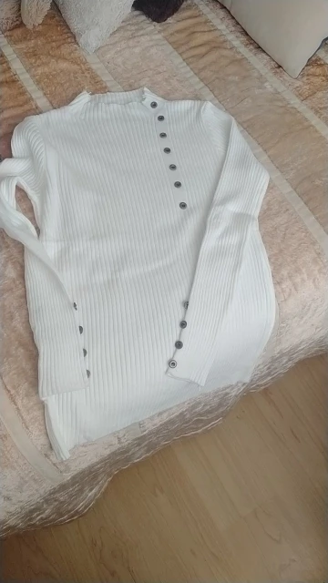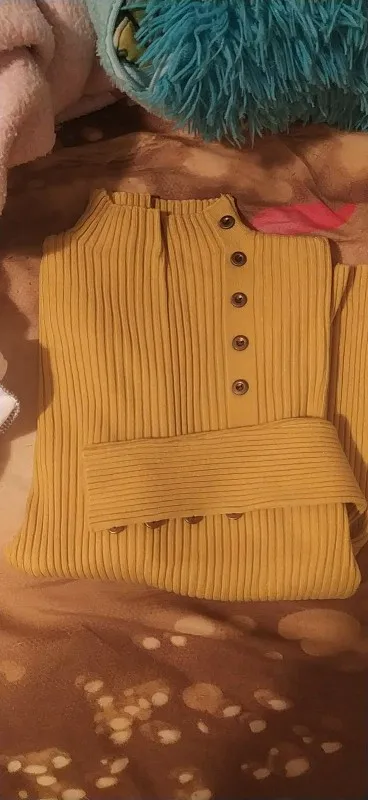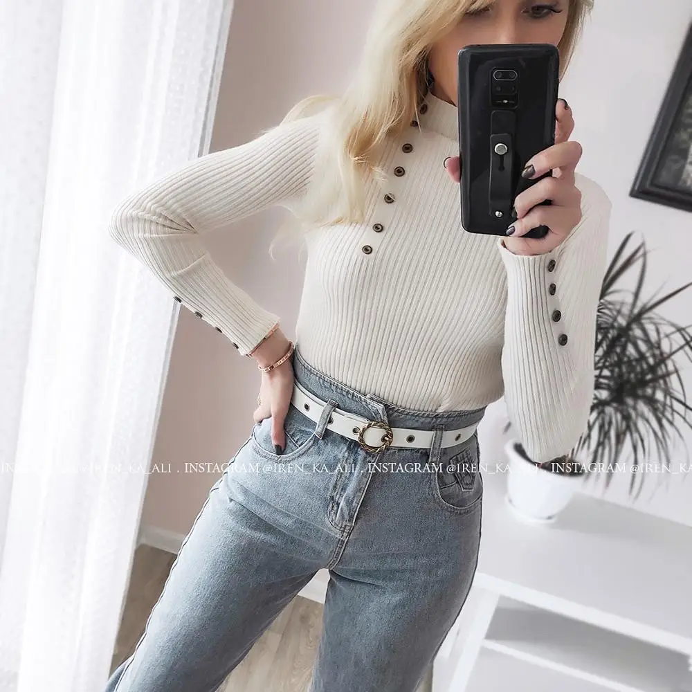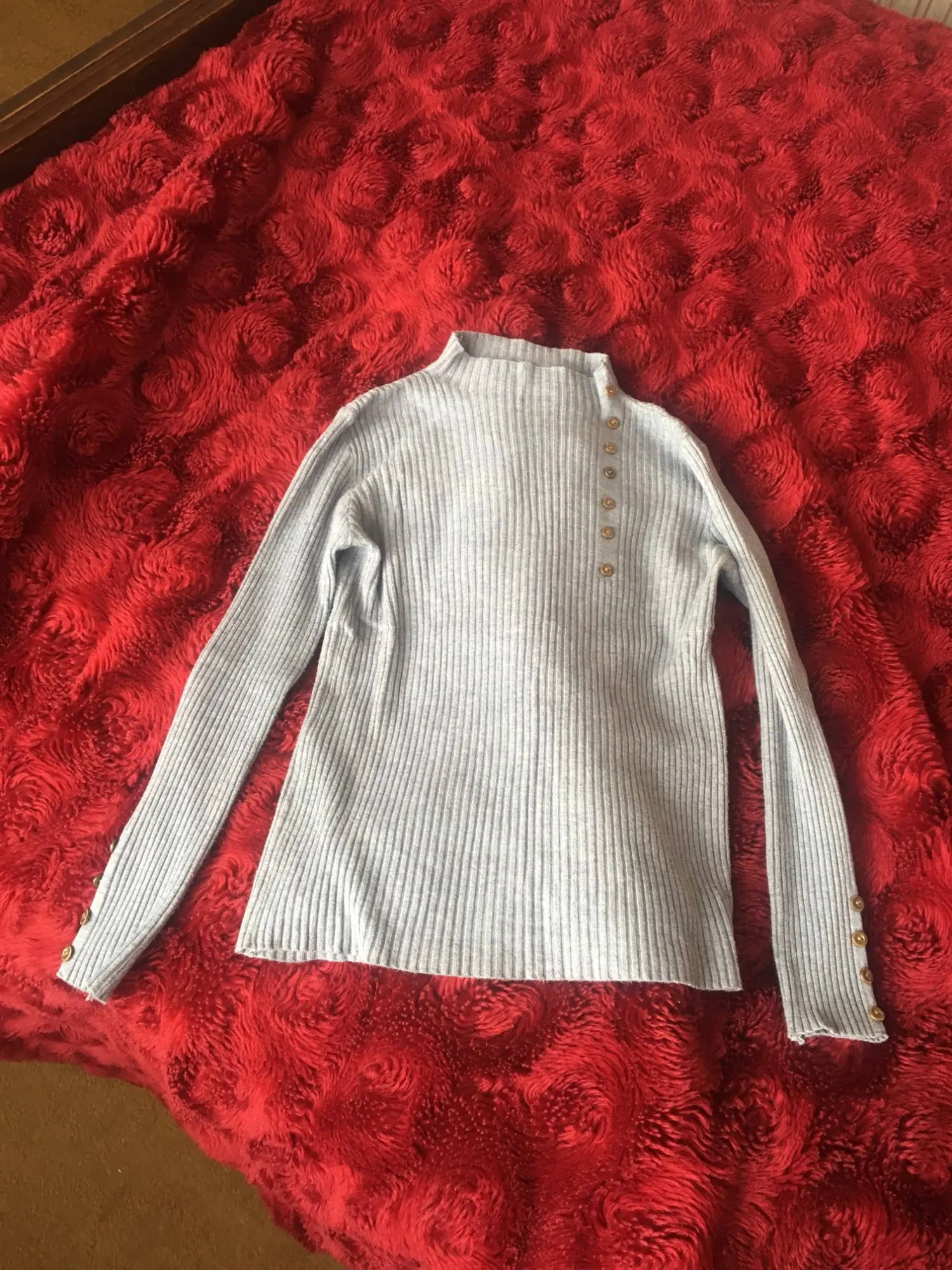 Мягчайший тоненький джемпер. Материал эластичный. На параметры 84/64/94 рост 160 см. подошел как раз. По передней полочке и рукавам украшен полосой мелких пуговиц, мне нравится как это смотрится) Воротник стоечка, мягкий и комфортный к шее, очень люблю такие. Мои отзывы с фото/видео в Инстаграм - Iren_ka_Ali, Facebook - Irenka.Ali, Telegram - Irenka_Ali (ссылки на все, что на мне) Приблизительные замеры в спокойном состоянии на фото.