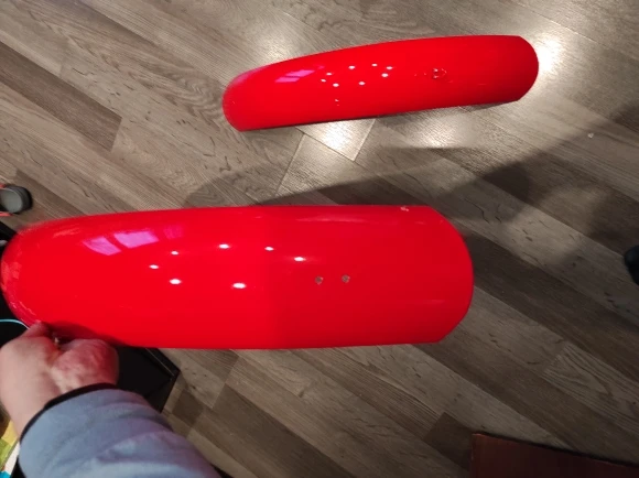 2 недели ждал отправки товара, после отправки пришёл за 5 дней, покрашено грубо, крепление переднего крыла было загнуто и прямо на него покрашено, при разгибании крепления вся краска отлетела, в комплекте не хватало пару болтов, упаковано всё было хорошо, в 100500 слоев плёнки
