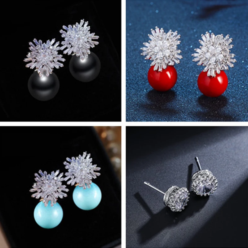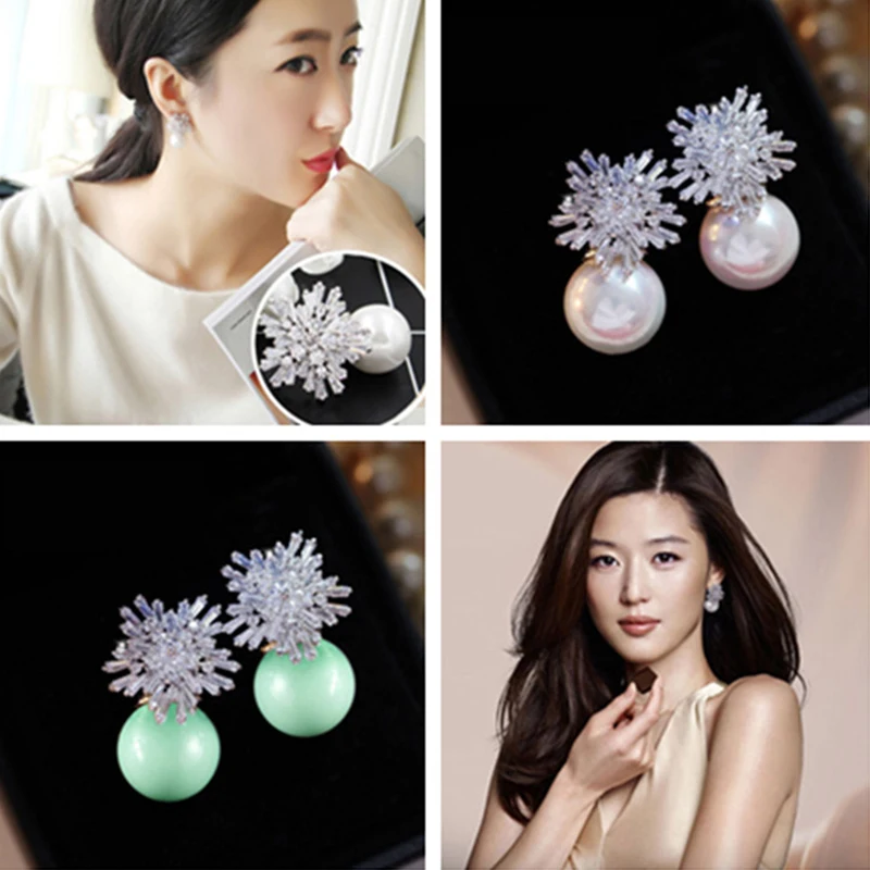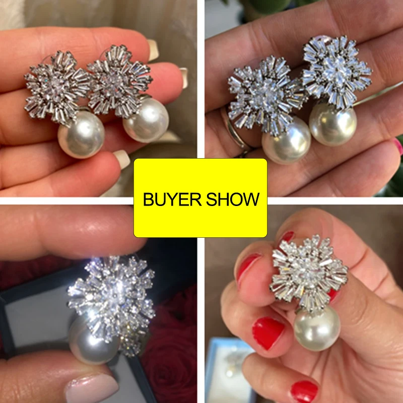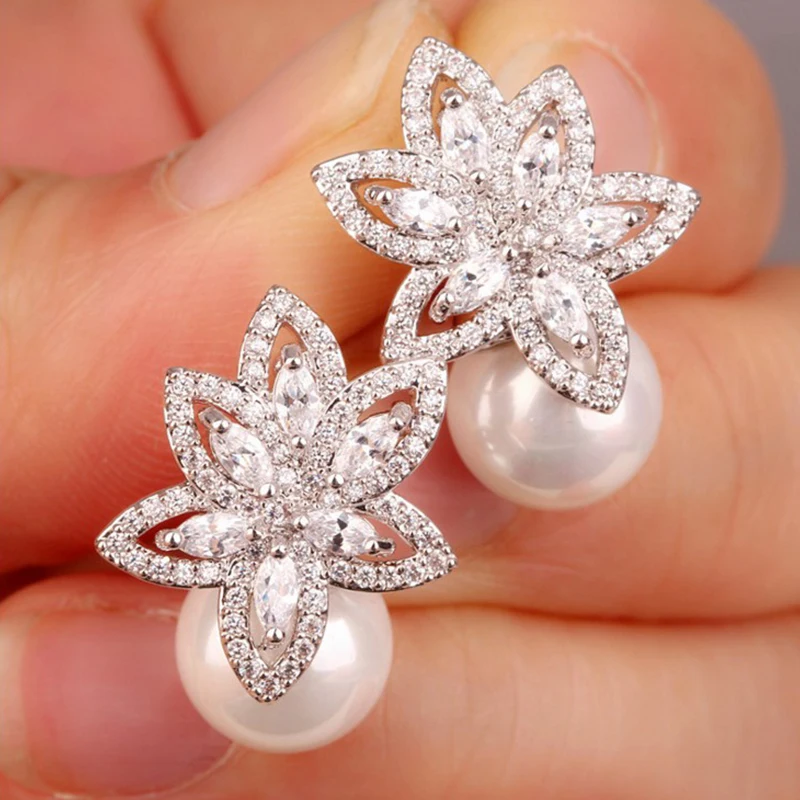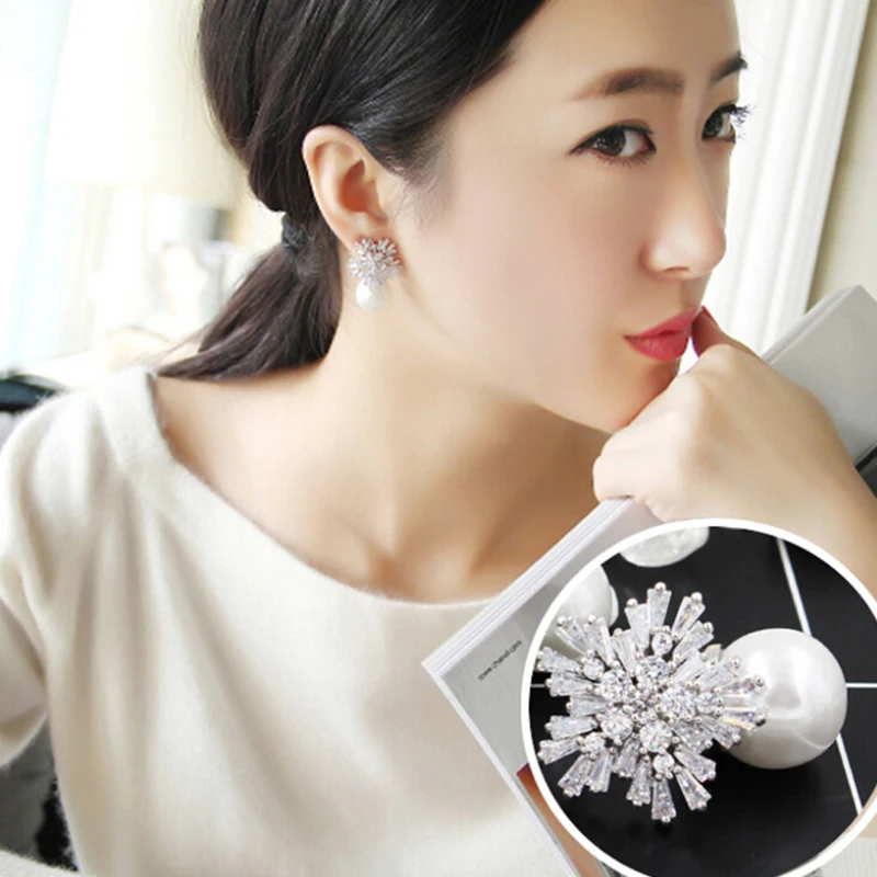 Роскошные квадратные серьги-гвоздики с австрийским кубическим цирконием для женщин, Модная бижутерия с искусственным жемчугом и снежным цветком для невесты, CEP075E