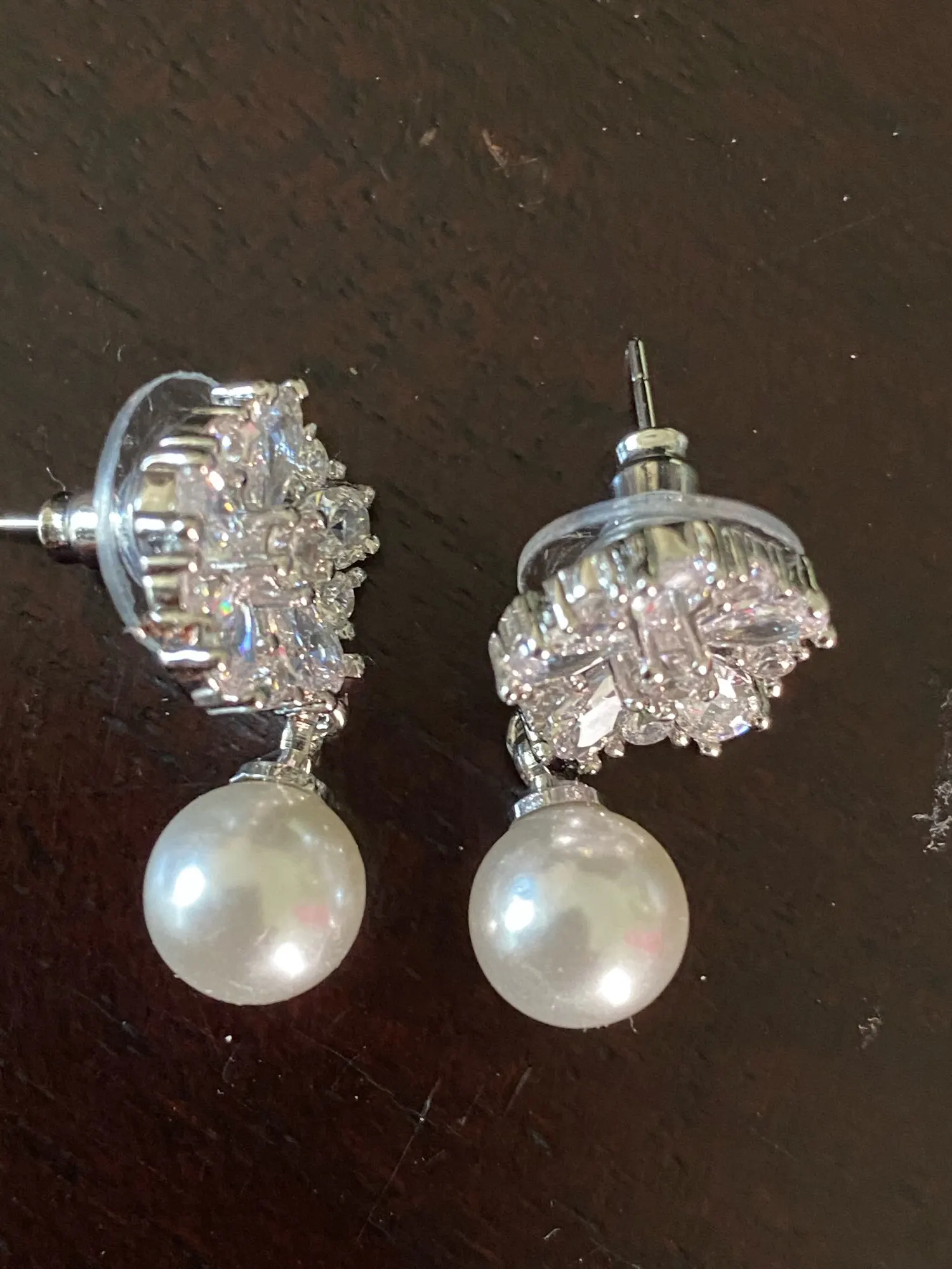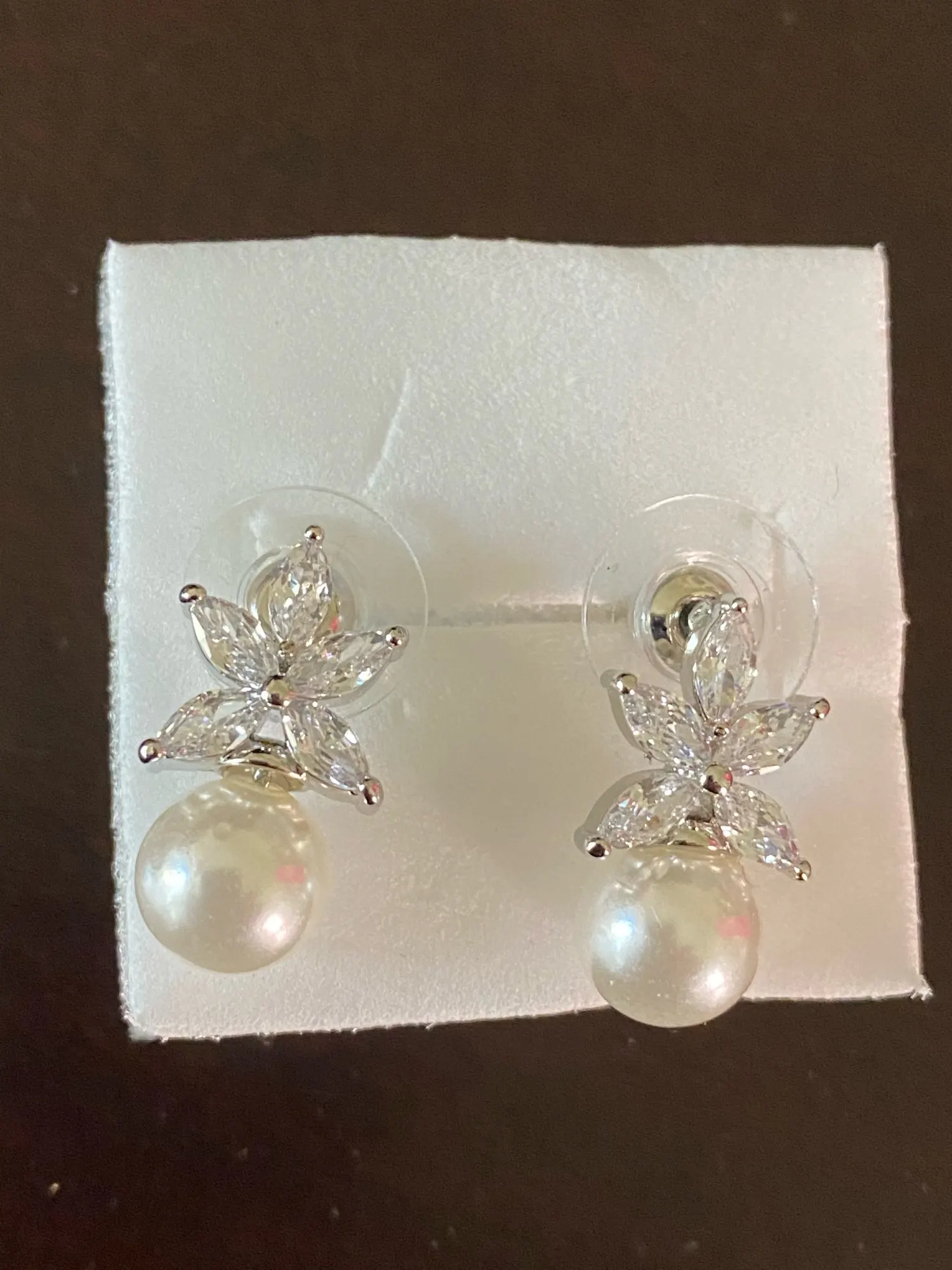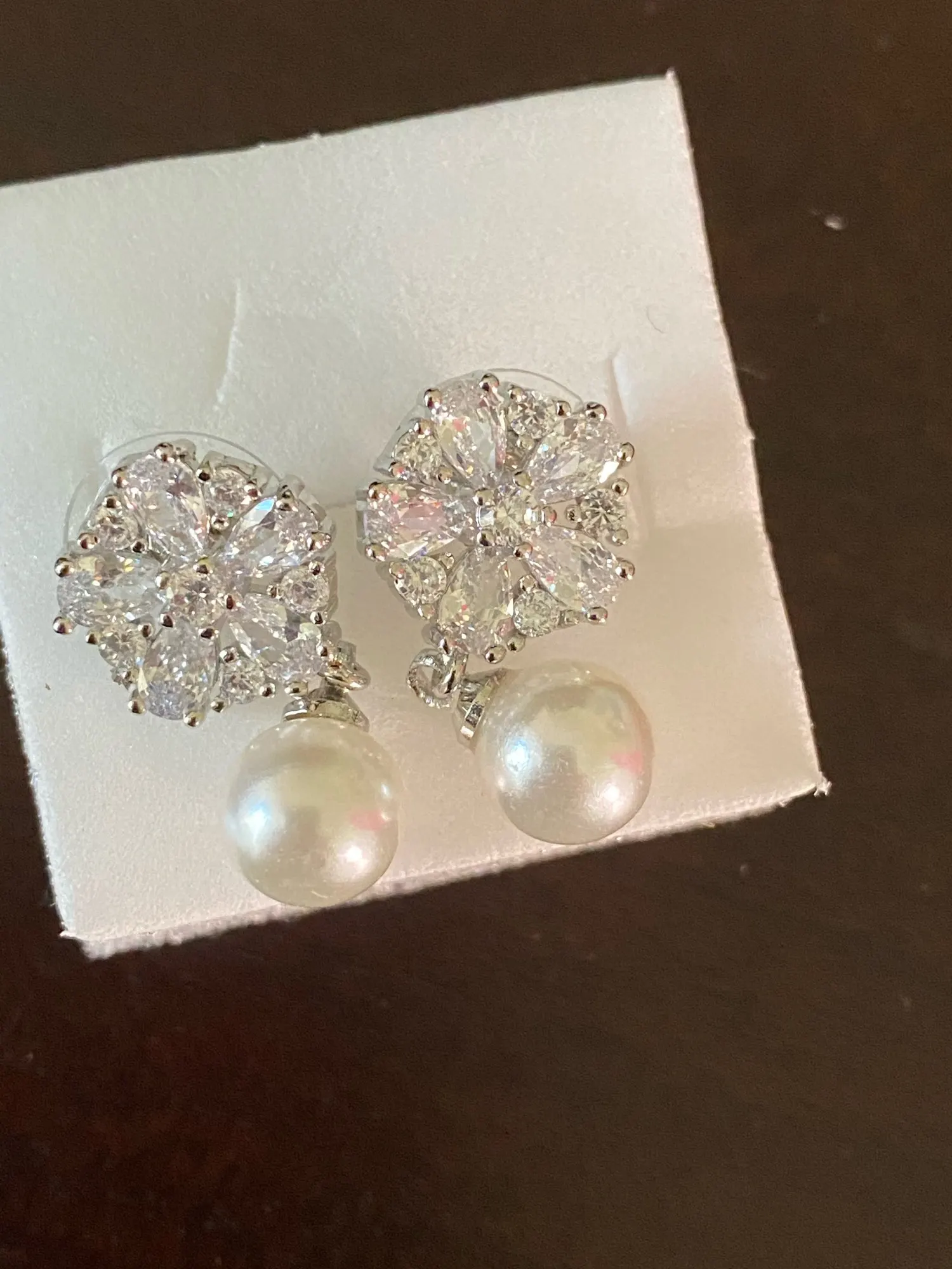 Роскошные квадратные серьги-гвоздики с австрийским кубическим цирконием для женщин, Модная бижутерия с искусственным жемчугом и снежным цветком для невесты, CEP075E