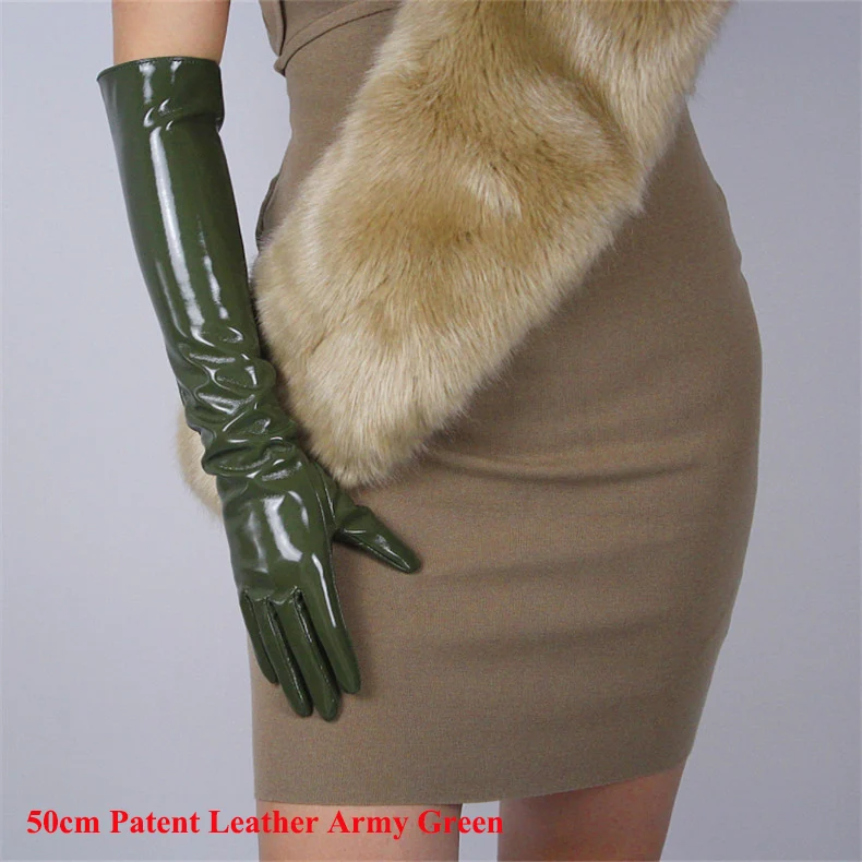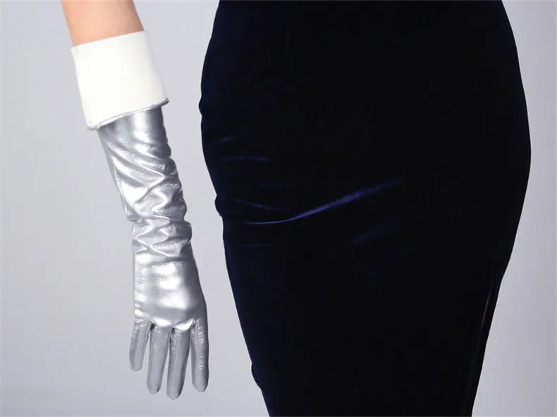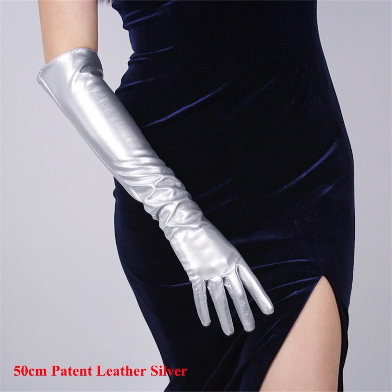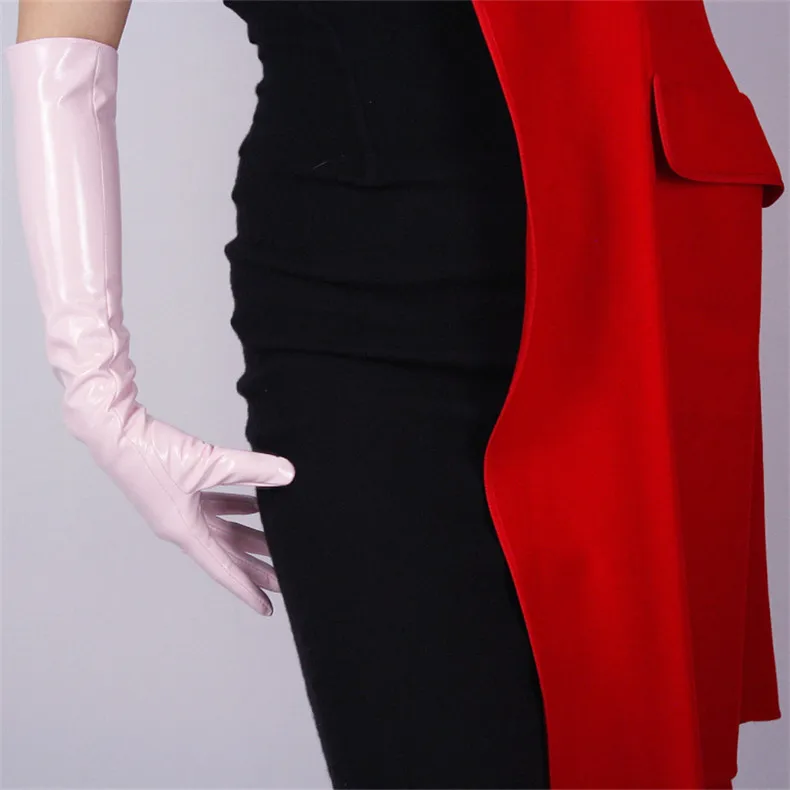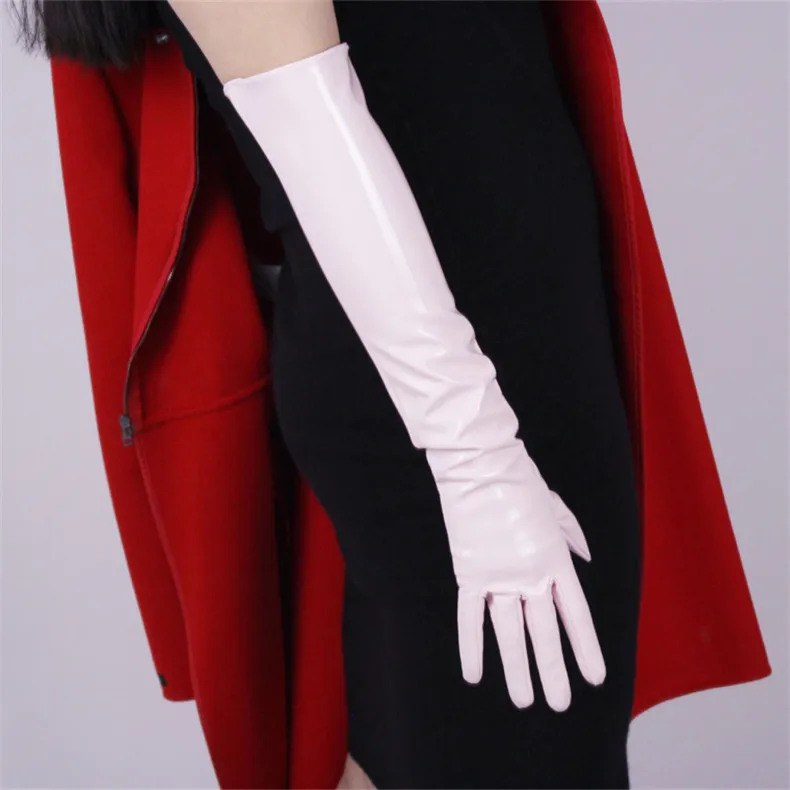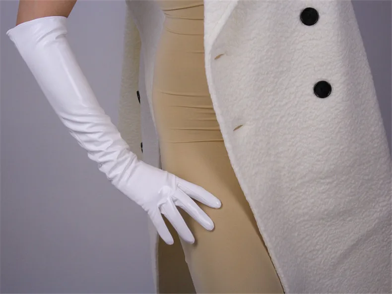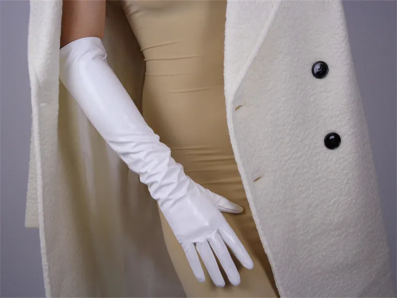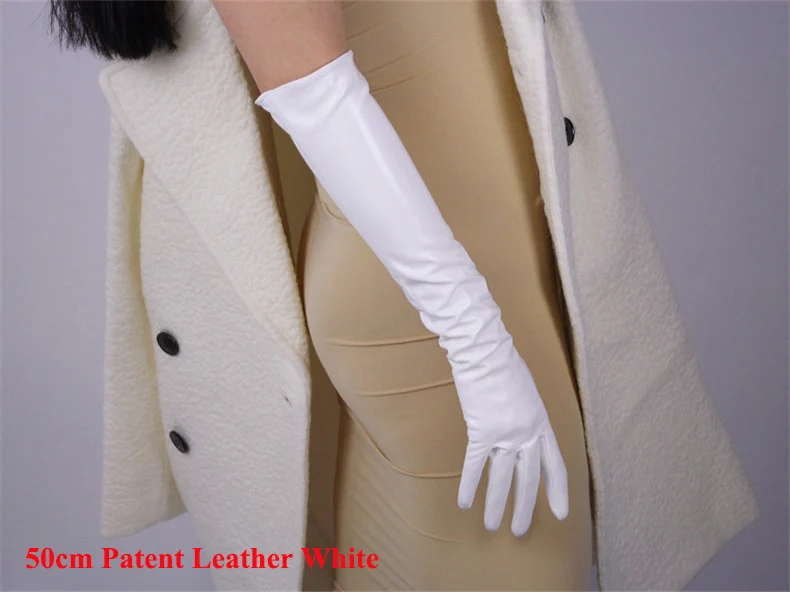 Длинные лакированные перчатки 50 см из искусственной овечьей кожи яркие белые женские перчатки из искусственной кожи WPU38-50
