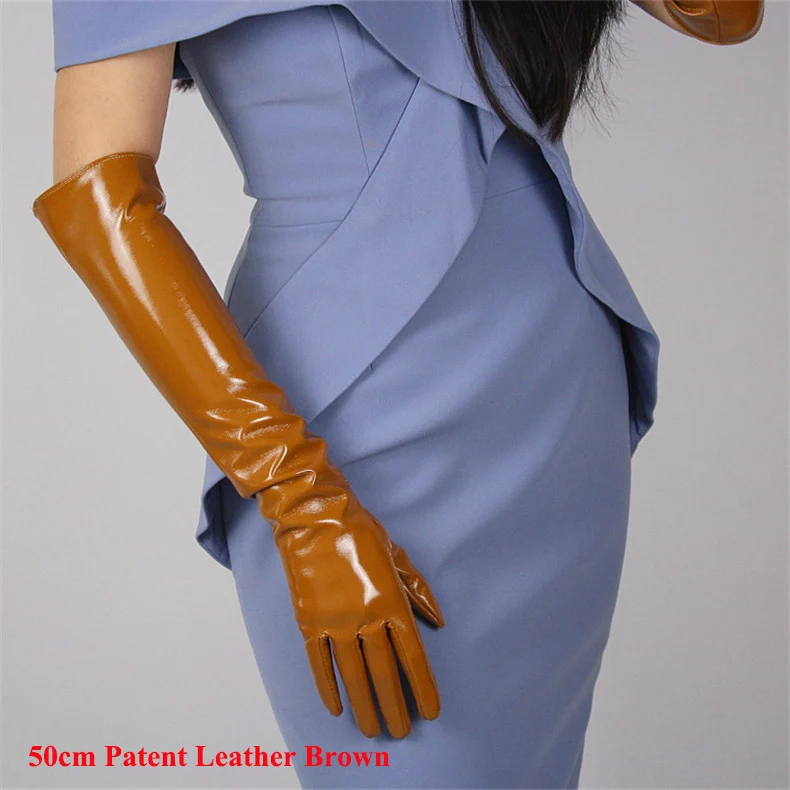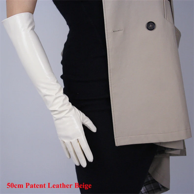 Перчатки длиной 50 см из лакированной кожи из искусственной овечьей кожи яркие белые женские перчатки WPU38-50