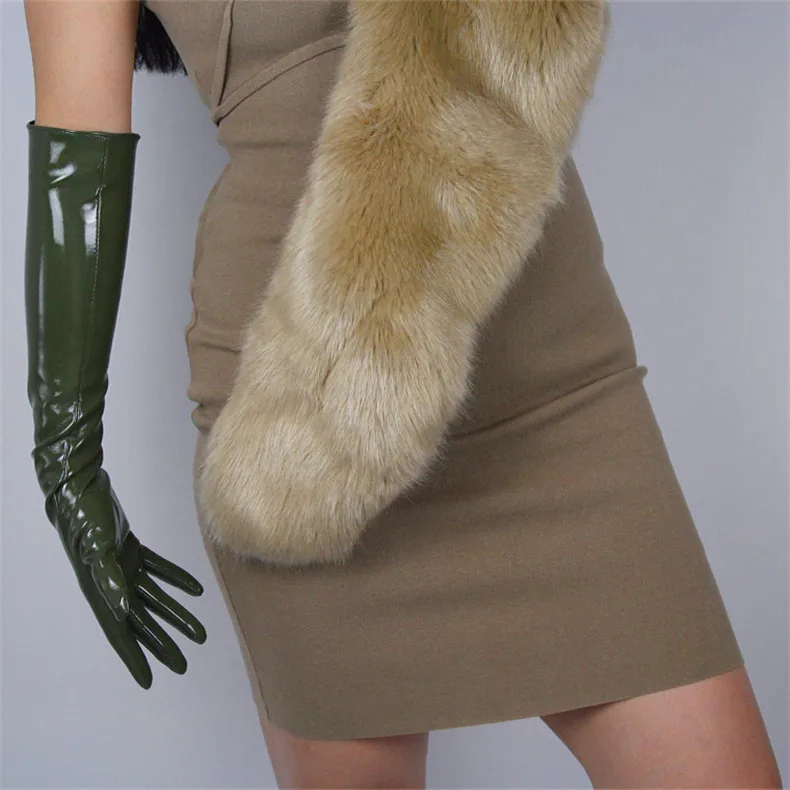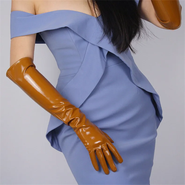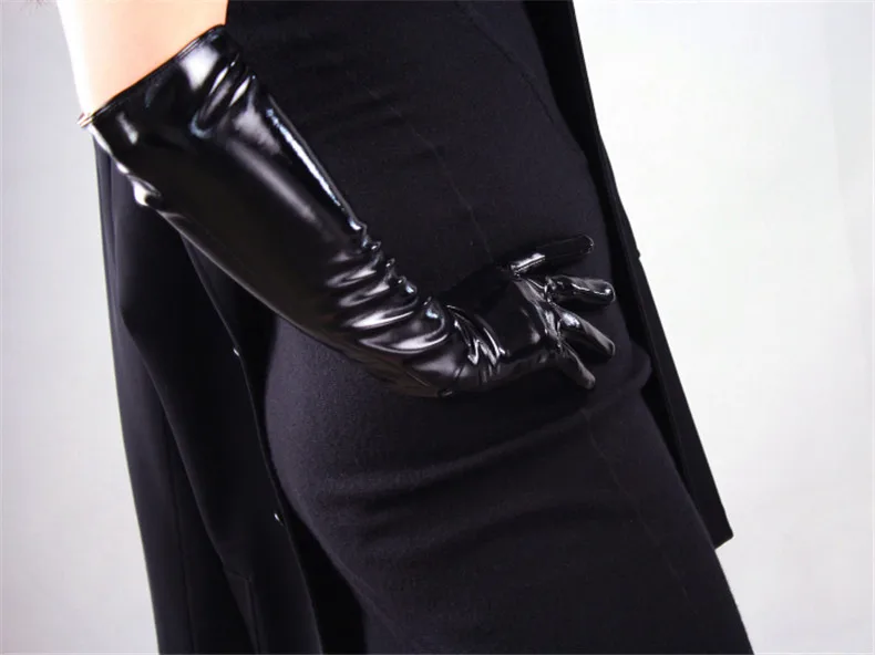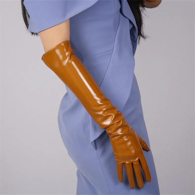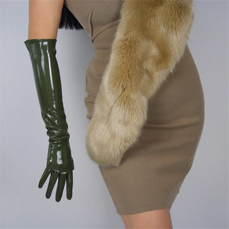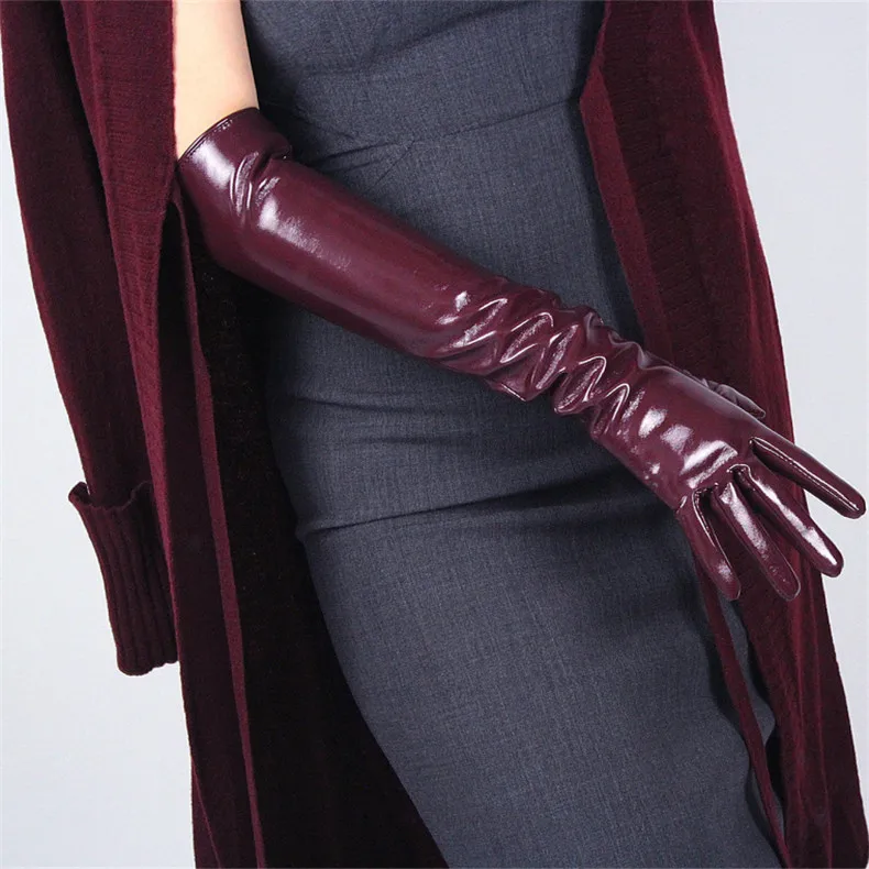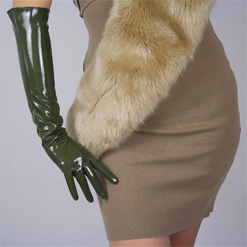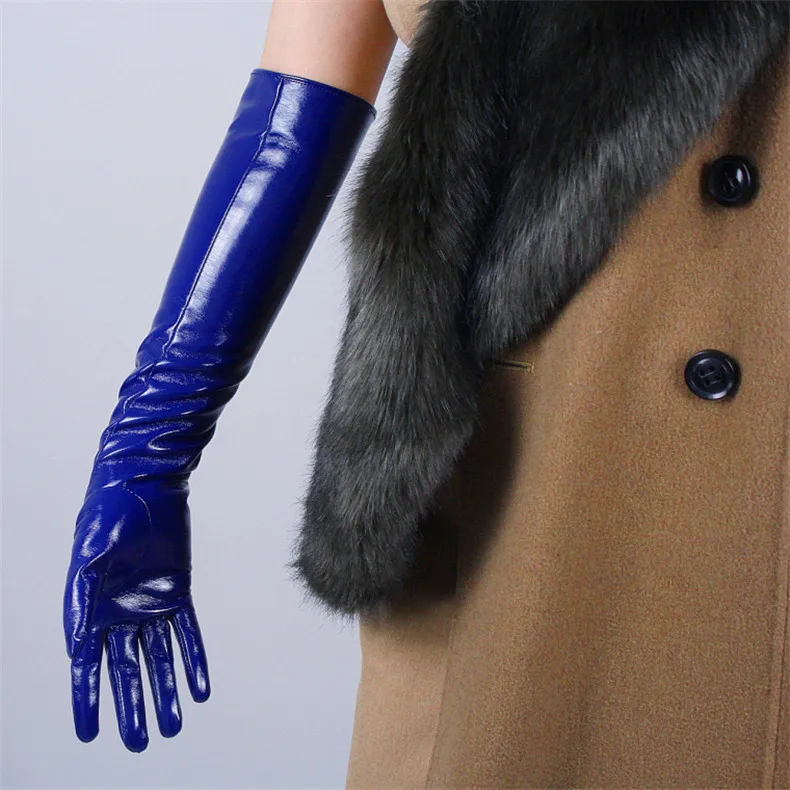 Перчатки женские из лакированной кожи, длина 70 см, цвет в ассортим...