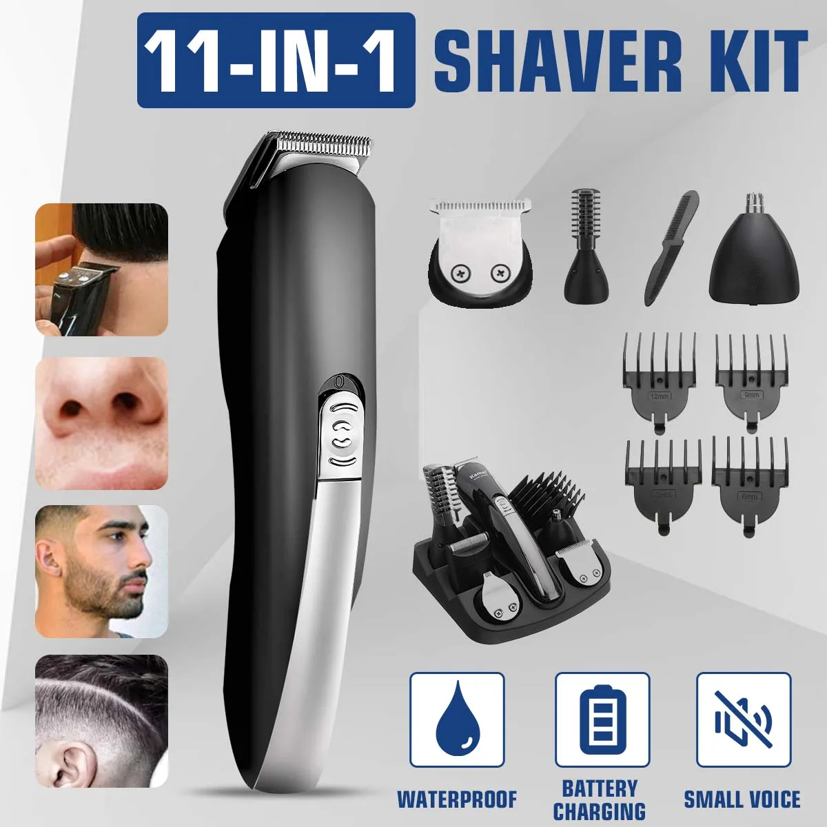 Kemei 11 в 1 машинка для стрижки волос, бритва, перезаряжаемая машинка для стрижки волос на теле, электрический триммер для бороды, триммер для носа, Мужская бритва, машинка для бритья
