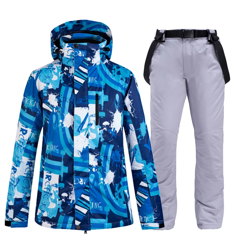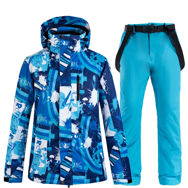 Мужской спортивный костюм для улицы-30, комплект одежды для сноуборда, водонепроницаемый Зимний костюм, синяя лыжная куртка + штаны-нагрудники для мужчин