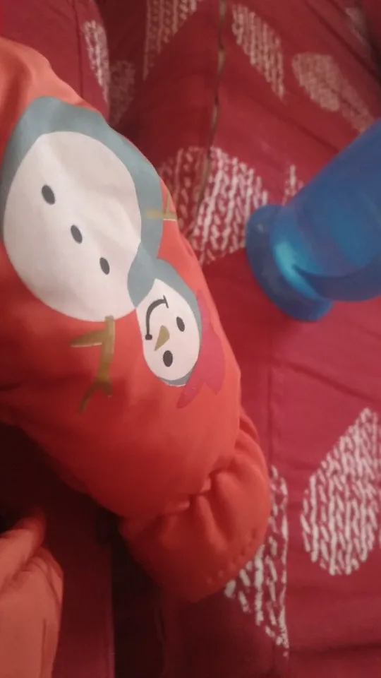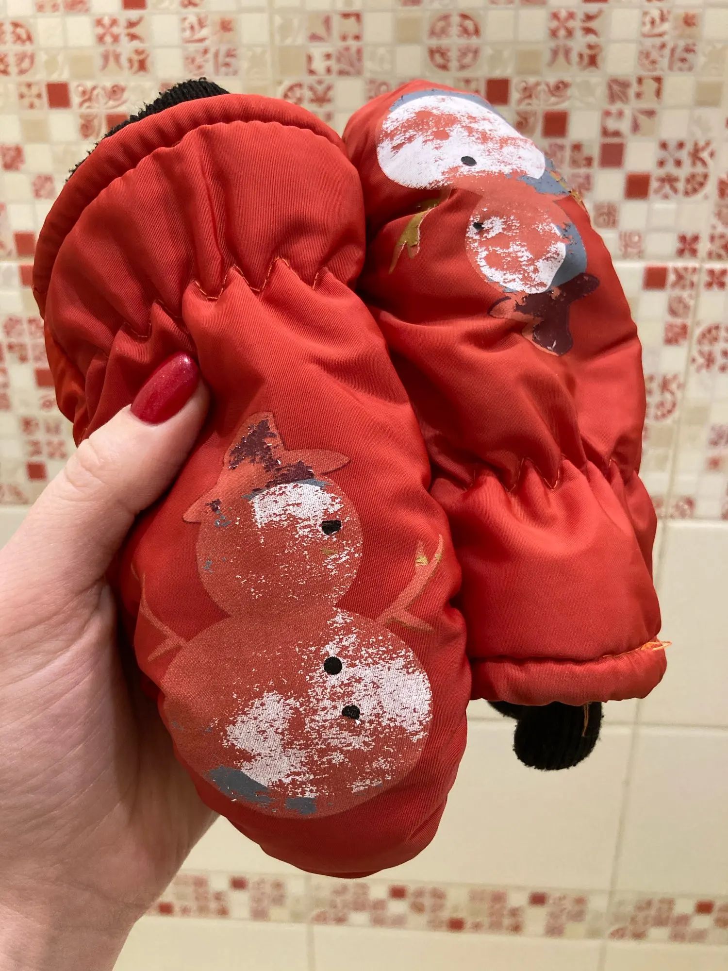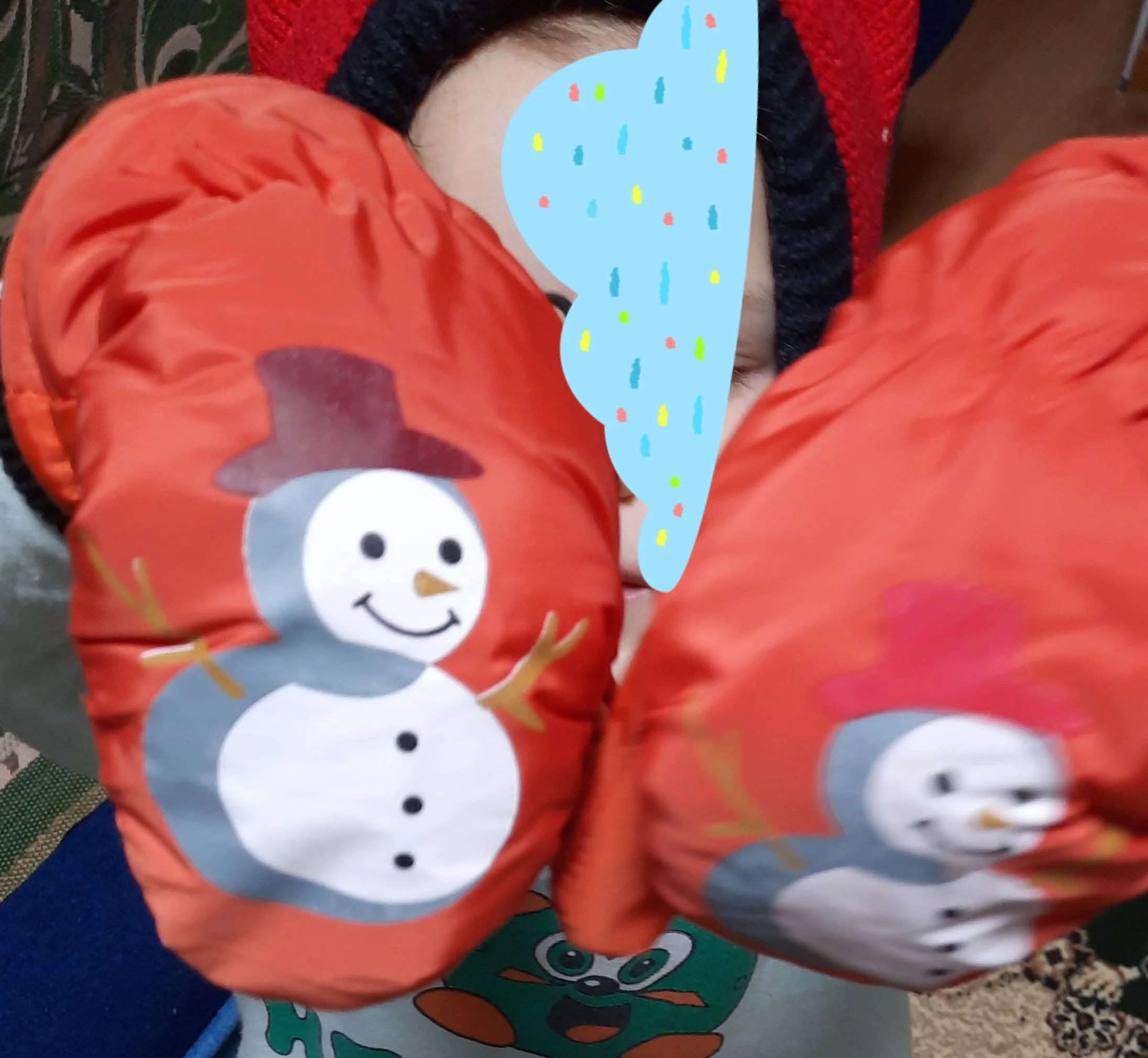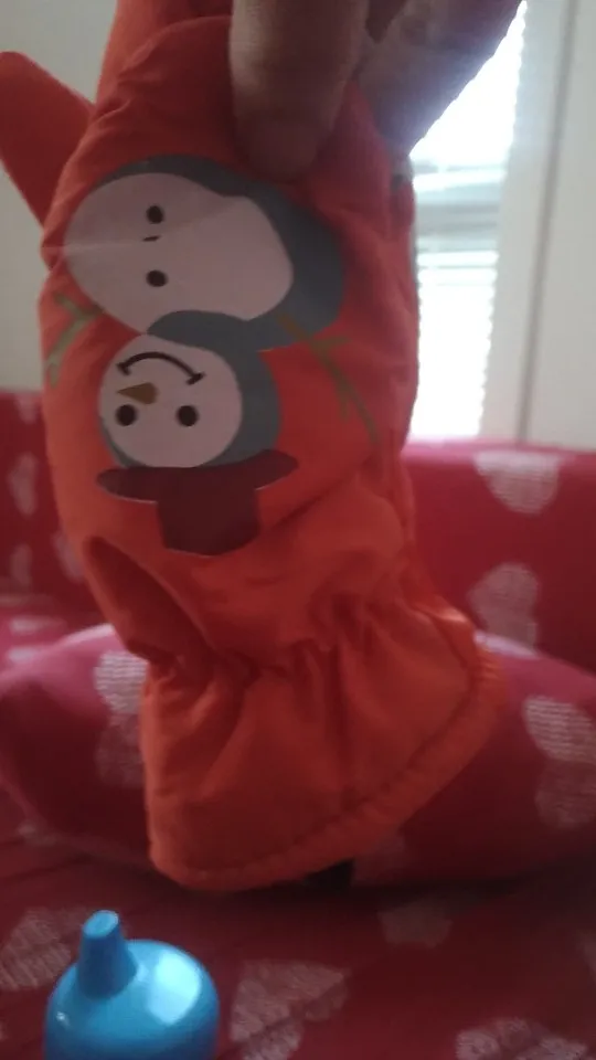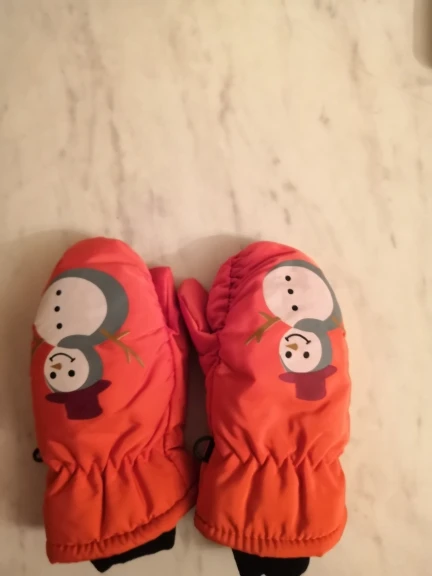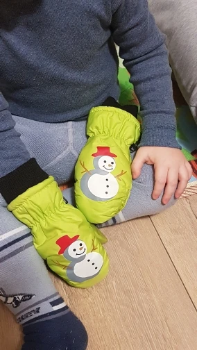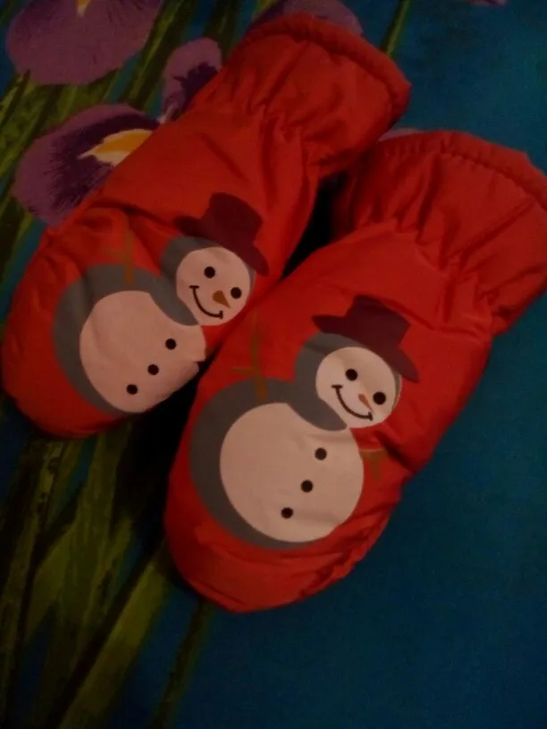 Немного затерт рисунок, но почти не видно на руке. На 3-4 года идеально садятся. понравились. Потом дополню, промокают ли, когда снег выпадет) Доставка 2,5 недели до Спб.