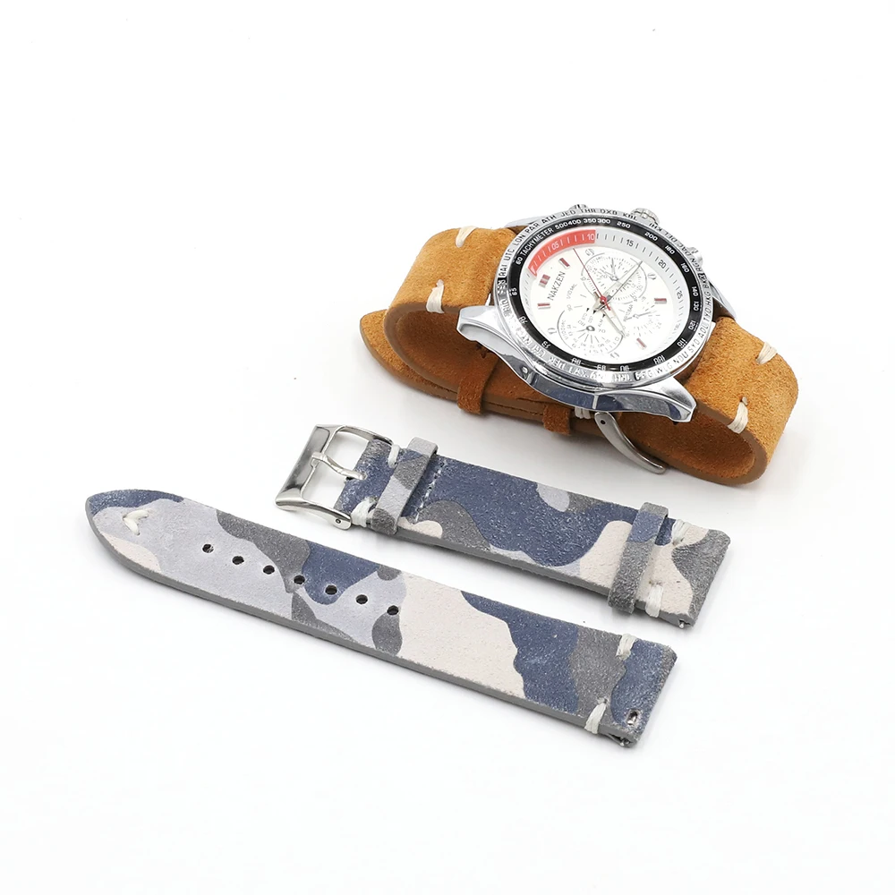 Ремешок замшевый для наручных часов, камуфляжный ретро-браслет для мужчин и женщин, 18 мм 20 мм 22 мм 24 мм, аксессуары для часов