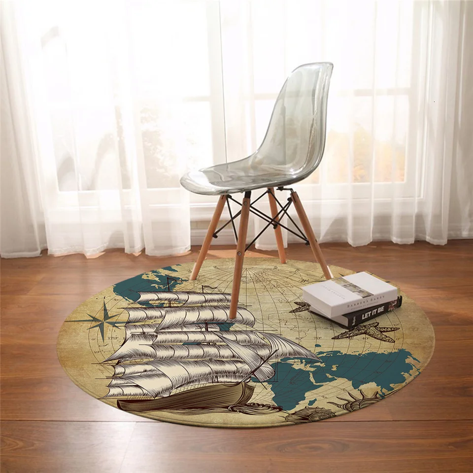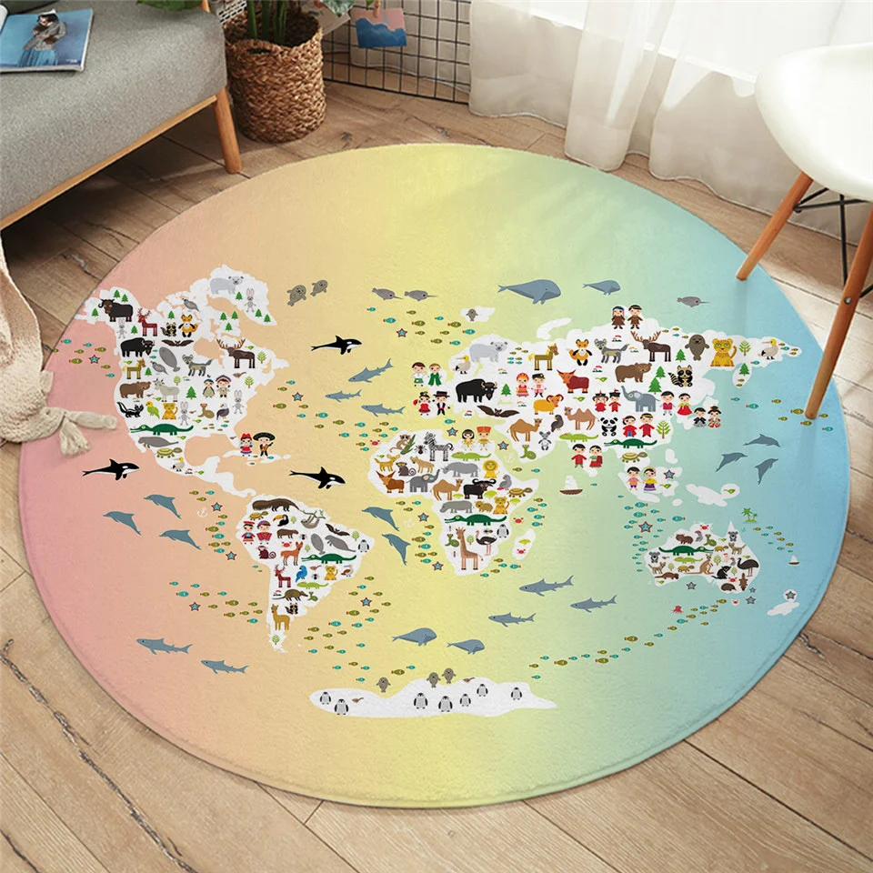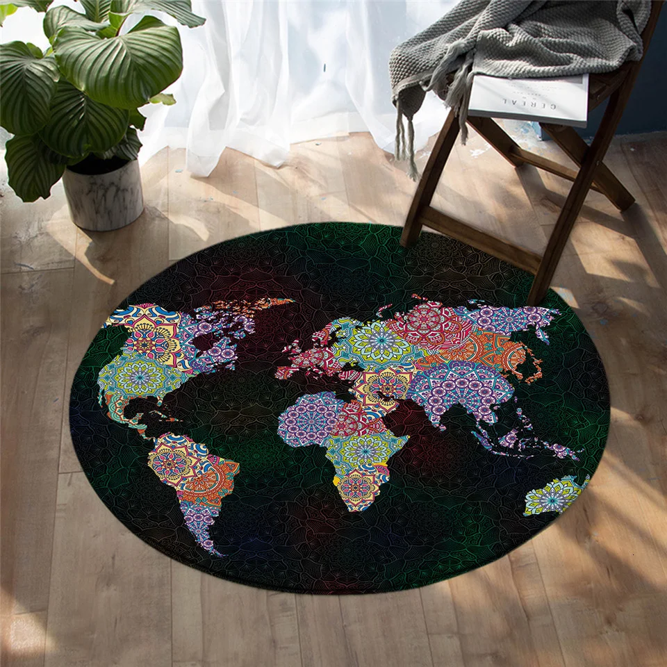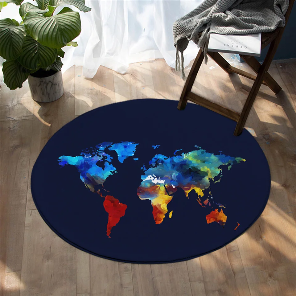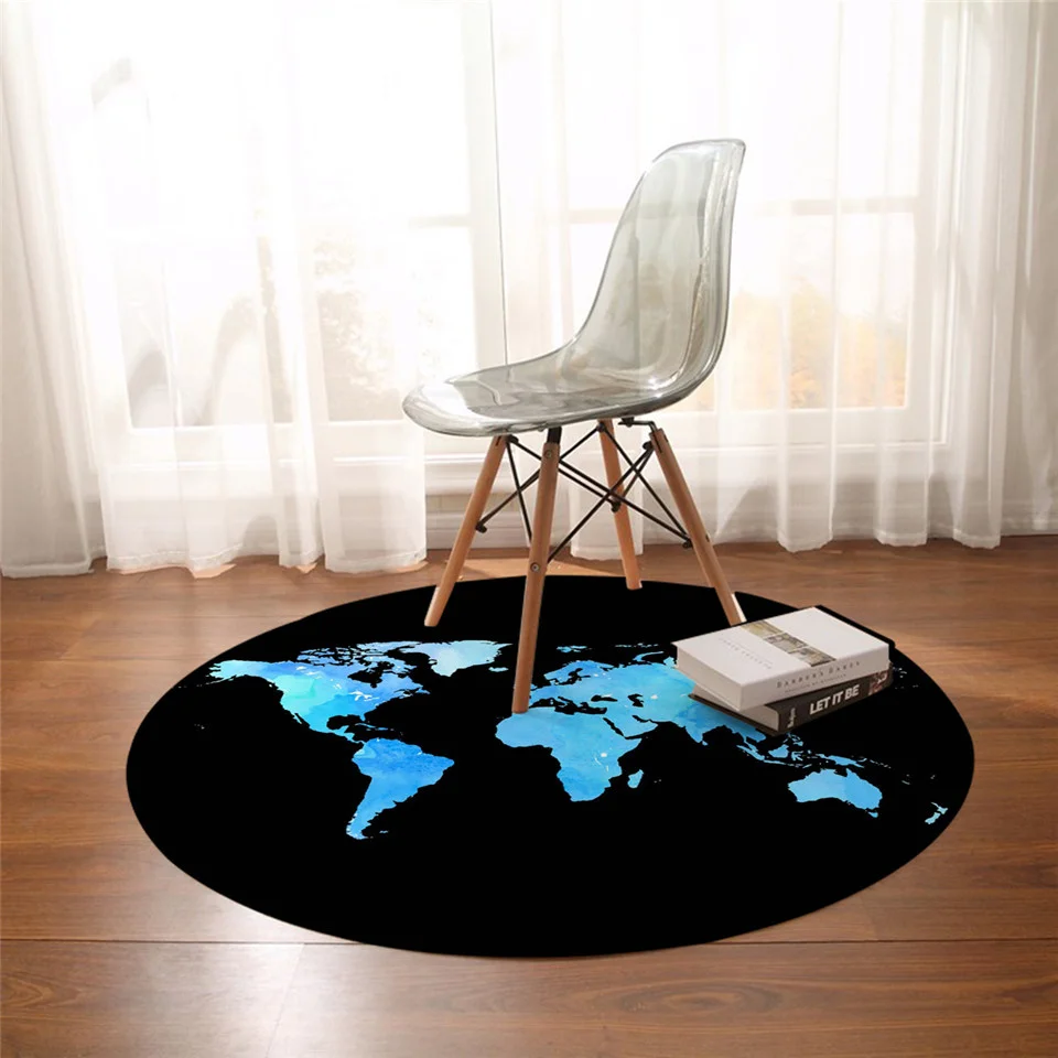 Круглые ковры BeddingOutlet с изображением карты мира для гостиной, яркий набивной ковер для стула, синий напольный коврик для спальни, детский игровой коврик