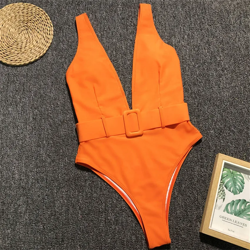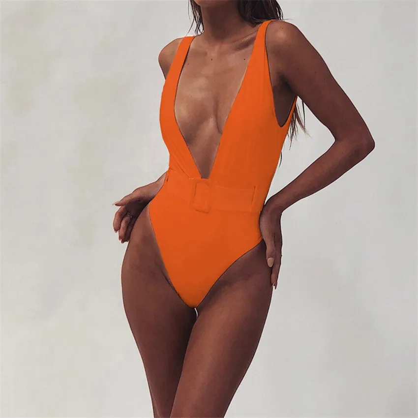 Женский слитный купальник, монокини с высокой талией, с V-образным вырезом, черный, красный, 2020