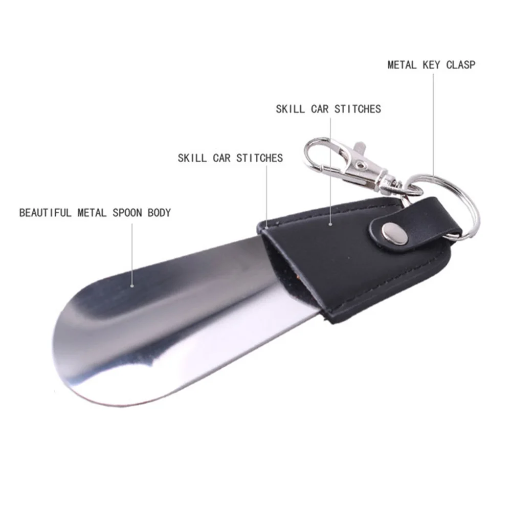 Портативная Складная рожка для обуви, прочная металлическая рога из нержавеющей стали, искусственная кожа, портативные модные рожки для обуви с кольцом для ключей