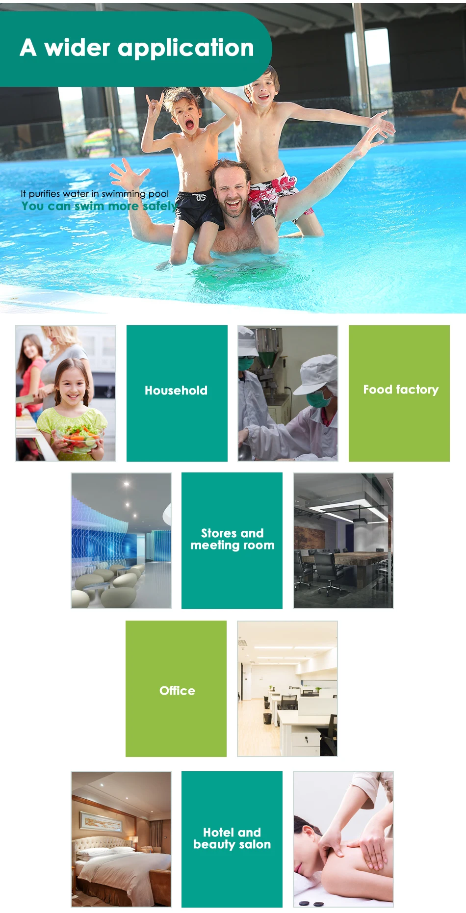 С использованием новейшей запатентованной технологии теплоотвода из алюминиевого сплава высокой плотности применяется для наружного воздушного охлаждения теплоотвода, что может обеспечить более эффективное отведение тепла. И долгое время распада озона очень низкая, <1/10.#6: Срок службы:Больше чем 20000 часов.#7: озоновый Блок питания:Защита от перегрузки по току и перенапряжения, защита от короткого замыкания, защита от открытого замыкания.Если кварцевая стеклянная трубка повреждена, озоновый блок автоматически прекратит выход высокого напряжения.