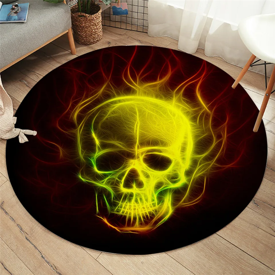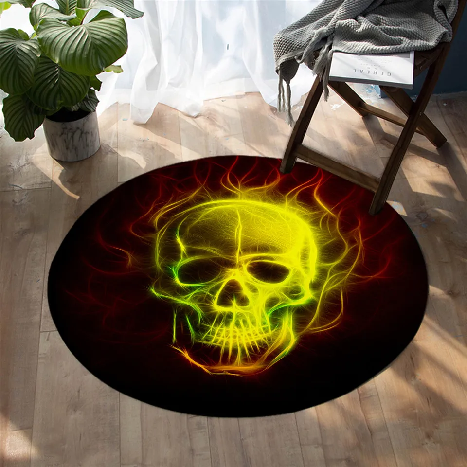 BeddingOutlet Готический круглый напольный ковер с черепом и пламенем, нескользящий ковер для спальни, декоративный ковер с Синим огнем, детский игровой коврик 100 см