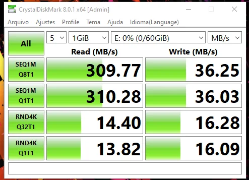Это самый быстрый флеш-накопитель, который я когда-либо видели. Проводя тест производительности на Windows, мне удалось: Скорость чтения 363 МБ/с./с Скорость записи 65,3 МБ/с./с Обязательно куплю больше!