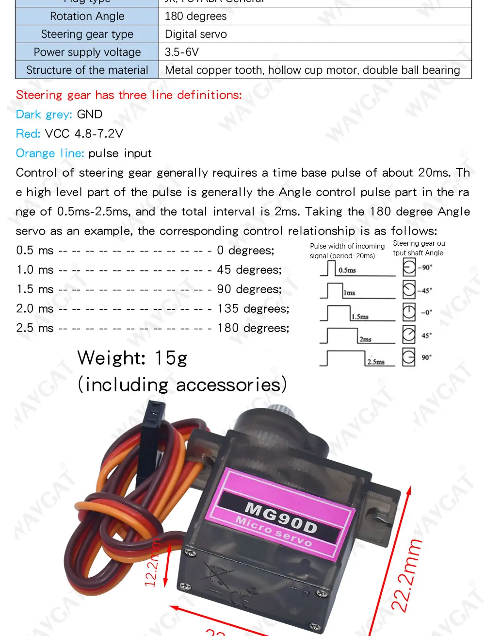 В описании следует подчеркнуть, что стандартное программное обеспечение сервопривода должно Модифицируйте для управления непрерывными сервоприводами на 360 °. Однако он работает нормально.