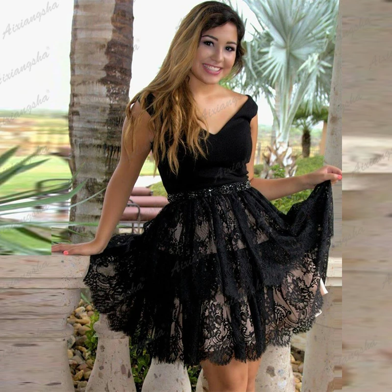 Aixiangsha черные платья для выпускного вечера с v-образным вырезом и кружевом