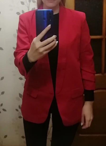 Офигенный пиджак за такие деньги. Ткань плотная, цвет как на фото, размерная сетка верная. Доставка быстрая. Брала к платью комбинации в качестве верха на свадьбу друзей, была самой красивой, после невесты конечно)) единственное нужно хорошо отгладить. Из бонусов - карманы не обманки. Спасибо продавцу, пиджак очень понравился.