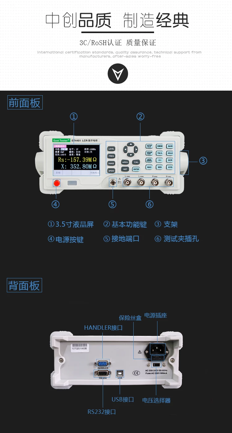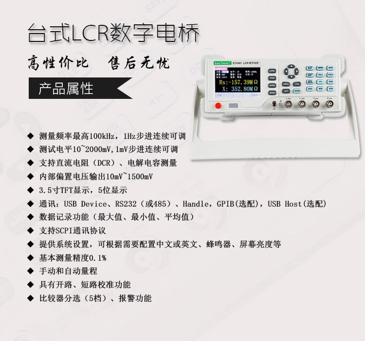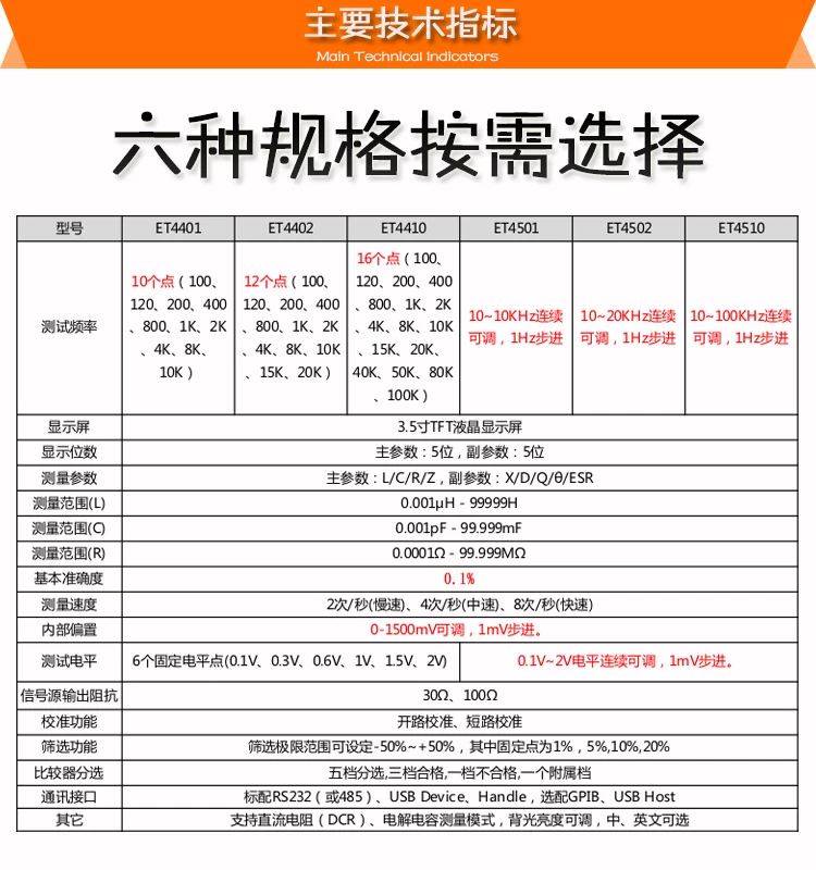 Эта серия настольных мостов интегрирует 3,5-дюймовый TFT дисплей, дружественной взаимодействия с пользователем интерфейс, а также сочетание нескольких параметры измерения. USB и RS232 могут облегчить удаленную работу пользователей и использовать ручку для сортировки компонентов. С точки зрения функции, не только Частота выхода и уровень тестирования постоянно регулируются, но также значение компонентов может быть записано в процессе измерения. С точки зрения параметров производительности, основная точность достигает 0.1%. В качестве примера это руководство использует мост 100 кГц.