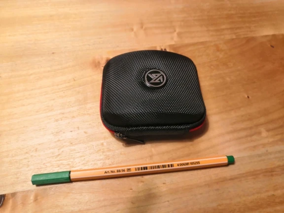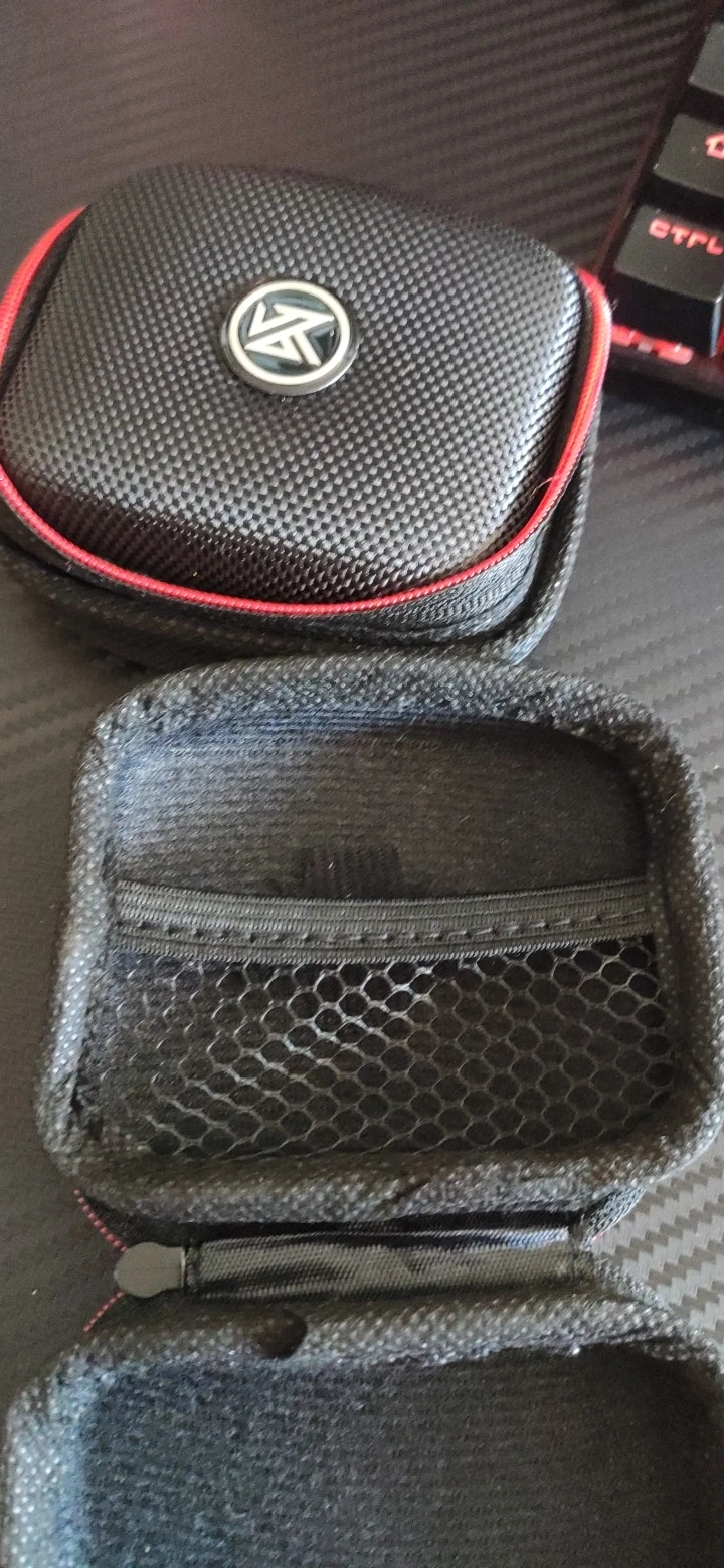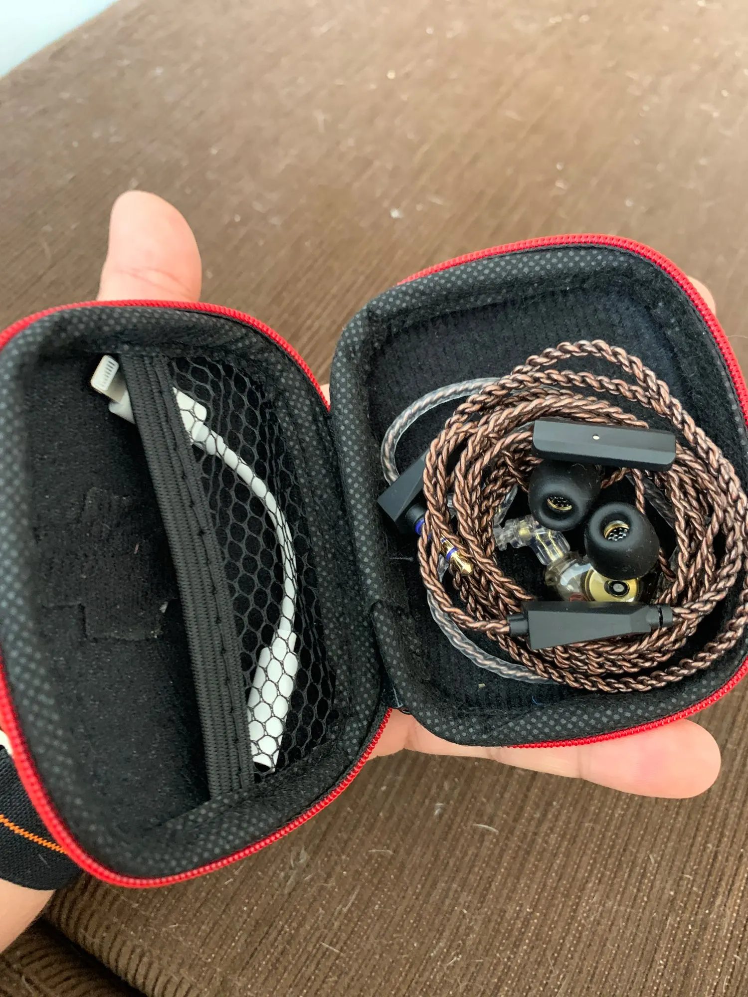Хороший и прочный маленький чехол для наушников. Просто достаточно большой для набора IEMs и, возможно, запасного кабеля с небольшим сдавливанием.