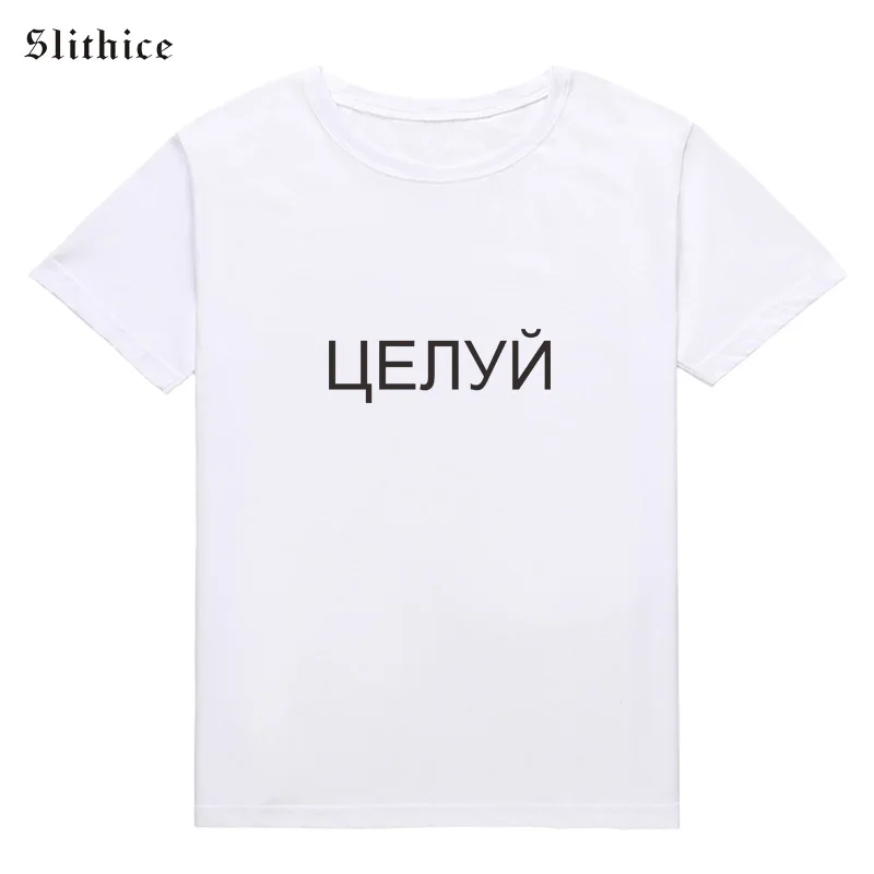 Slithice летняя новая женская футболка с надписью в русском стиле, ...