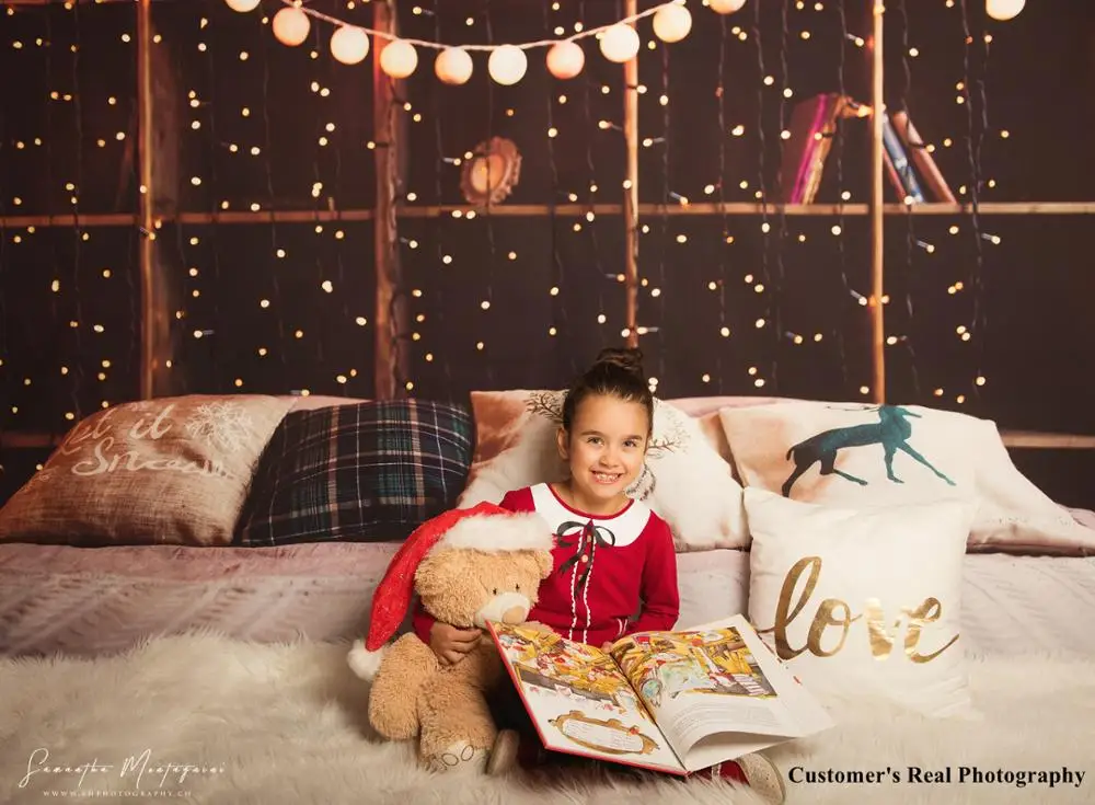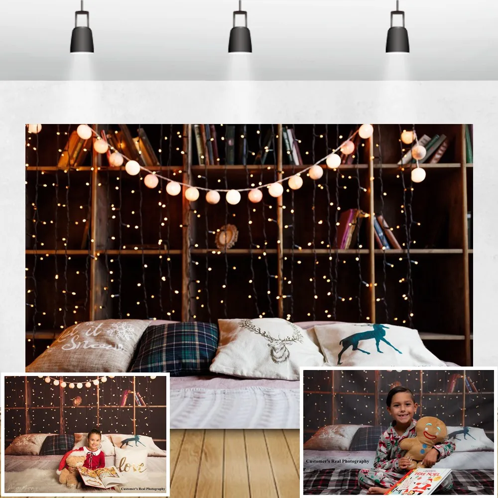 Laeacco Рождественская фотозона книжная полка светильник лые подушки спальня декор Фотография фоны Baby Shower фоны для фотостудии