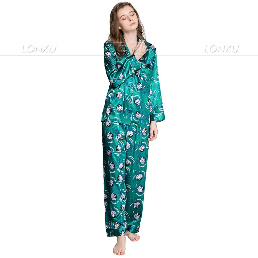 Женская шелковая атласная пижама, комплект пижамы, домашняя одежда,...