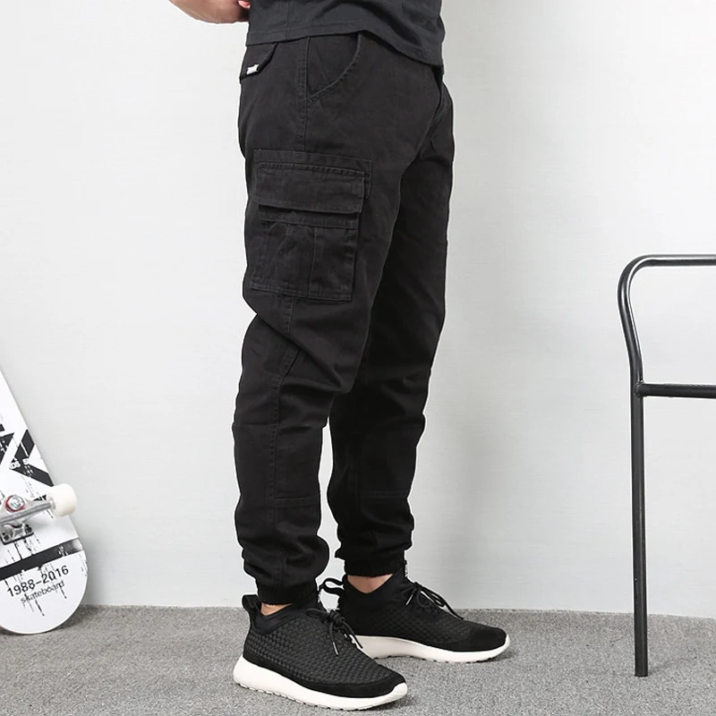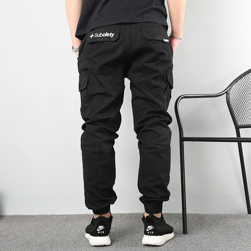 Джинсы-карго мужские свободного покроя с большими карманами, модные брюки-султанки в японском стиле, повседневные штаны с широкими штанинами, уличная одежда в стиле хип-хоп, джоггеры