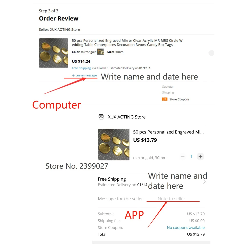 Пожалуйста, сообщите мне следующую информацию в разделе «примечания продавцу» при размещении заказа
